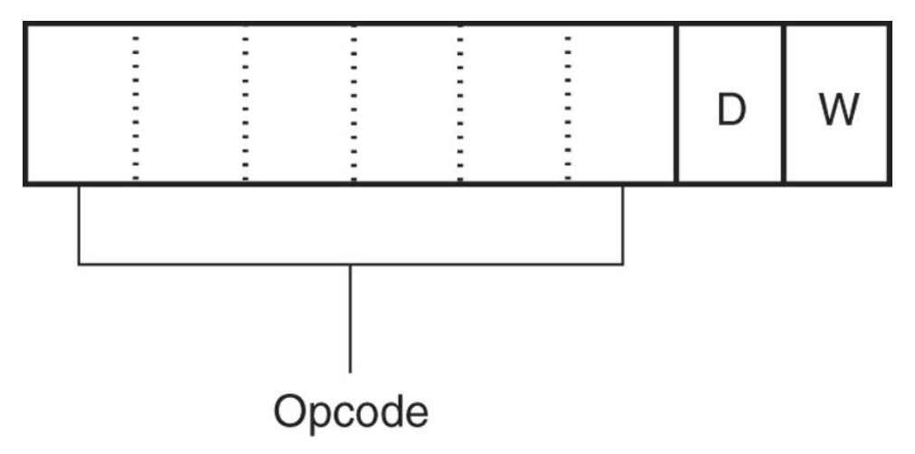 其中 W 位出现在大多数指令中,而 D 位主要出现在