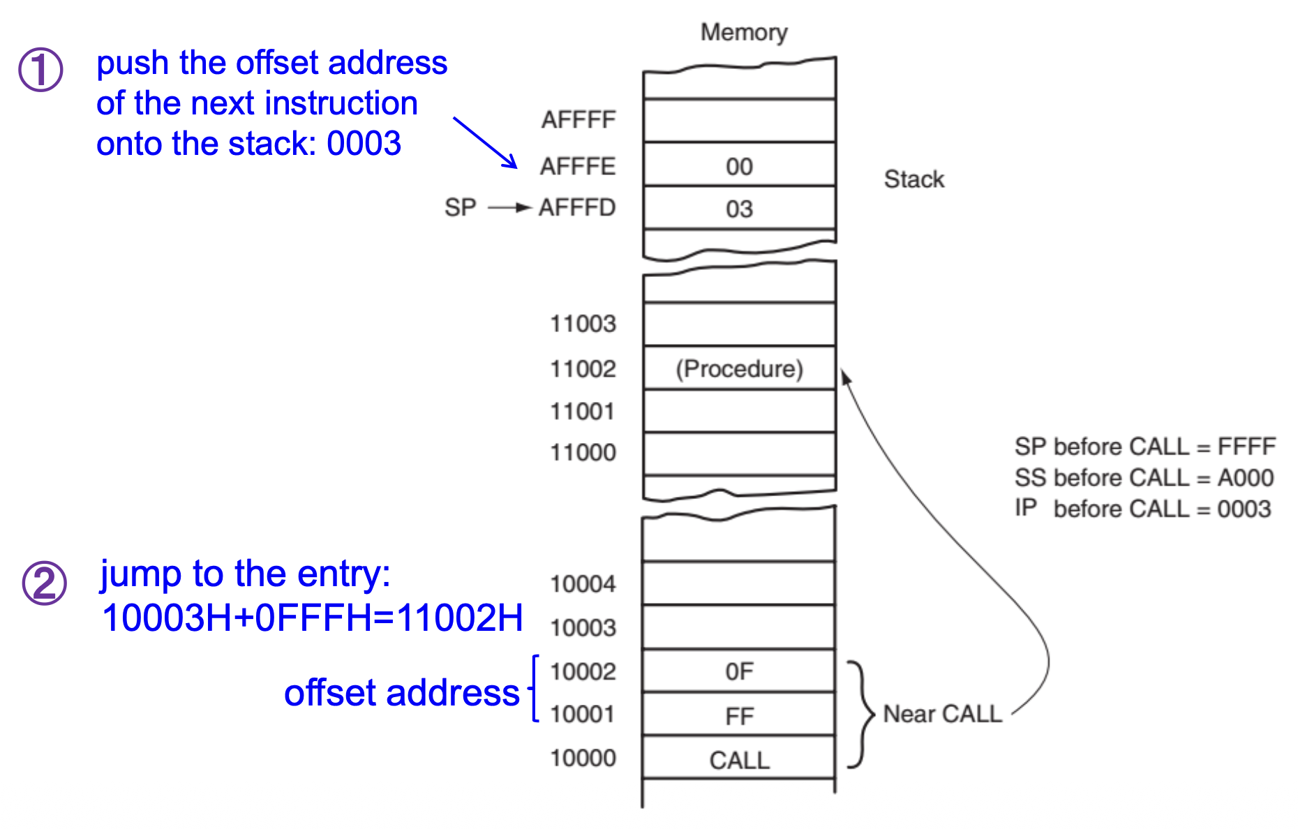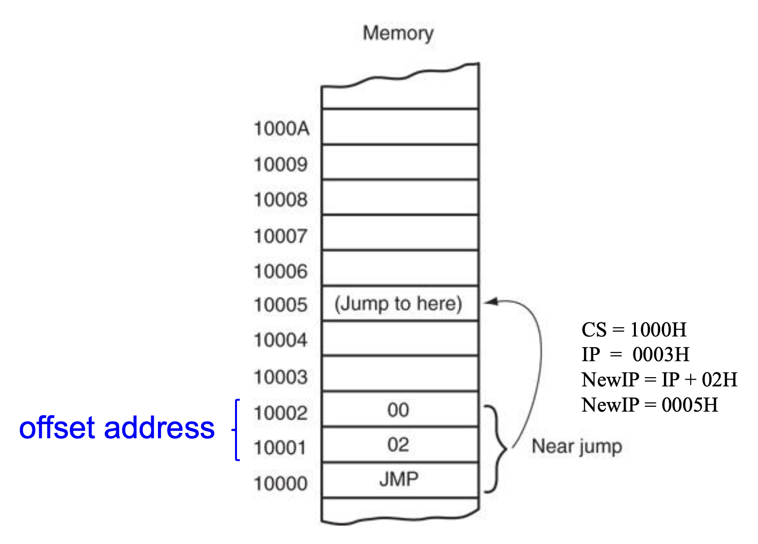 - 实模式下,近跳是一个 3 字节指令,包含操作码以及一个 16 位的符号偏移量