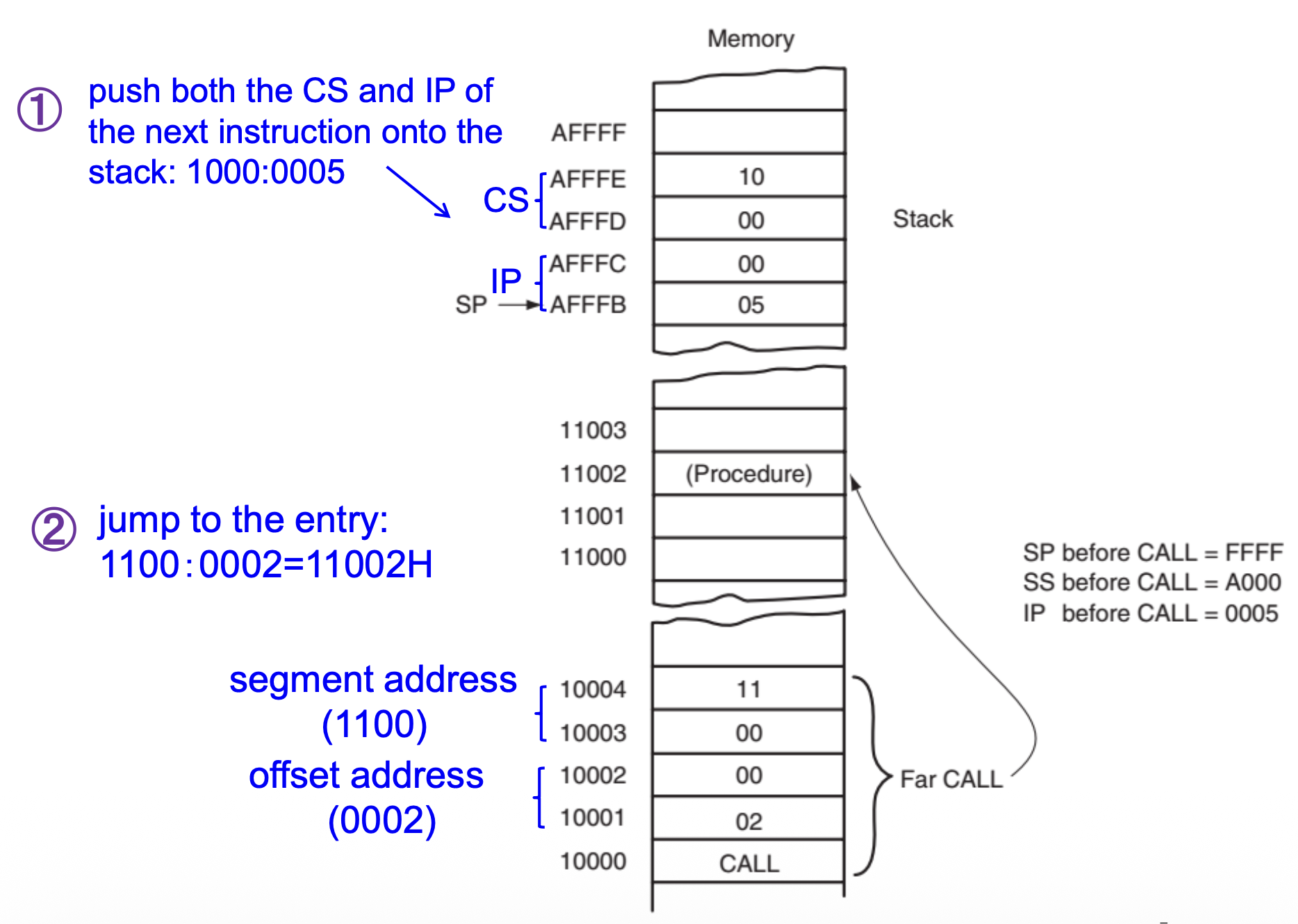 - 16 或 32 位的偏移地址包含新代码段的偏移地址
