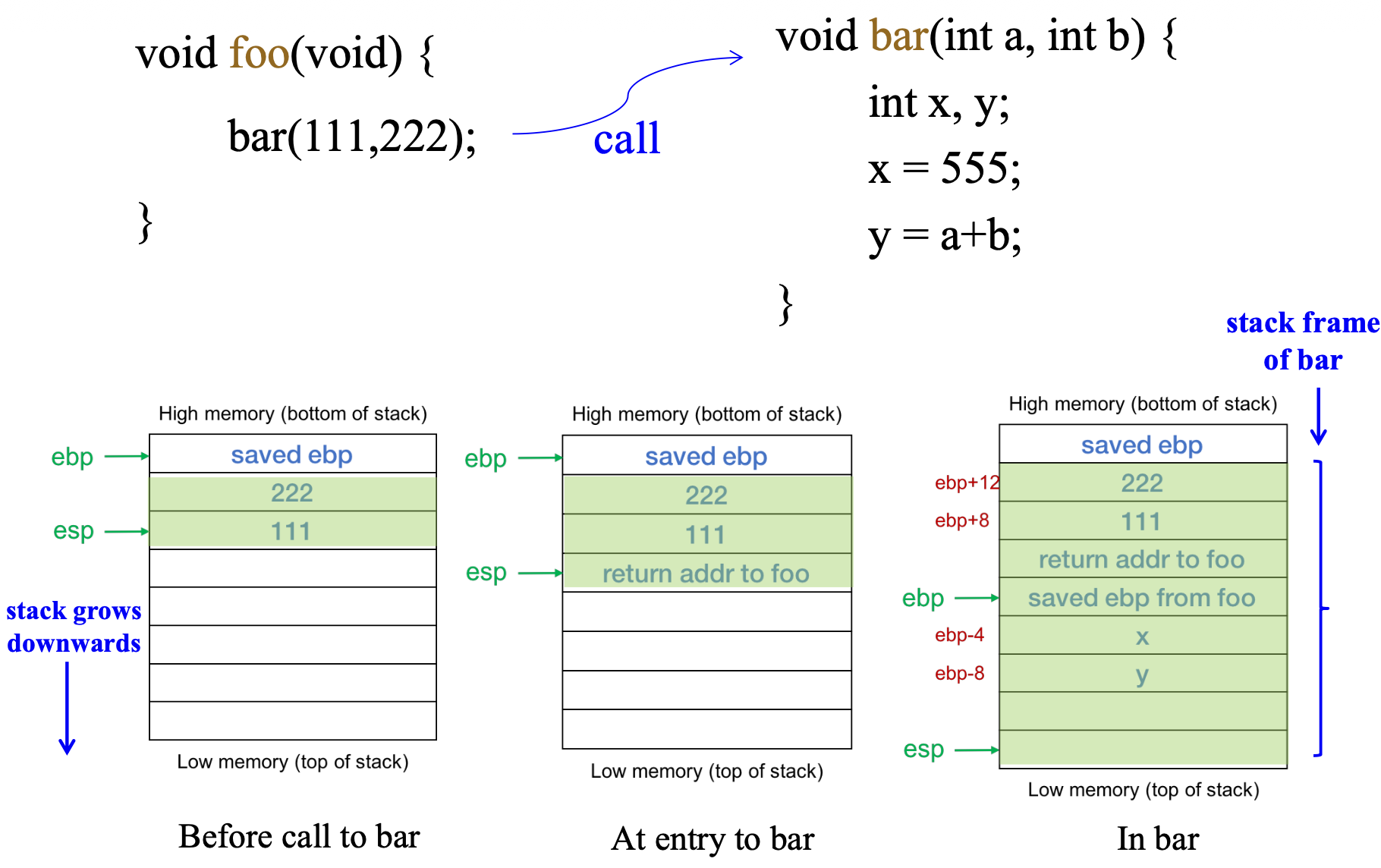 EBP(基指针(base pointer))在管理函数调用期间的栈帧中发挥着关键作用:EBP充当函数栈帧内的稳定参考点(stable reference point),用于访问局部变量和函数参数EBP的值在整个函数执行过程中保持不变,而ESP(栈指针)可能会改变- 在设置好栈帧后,函数参数通过