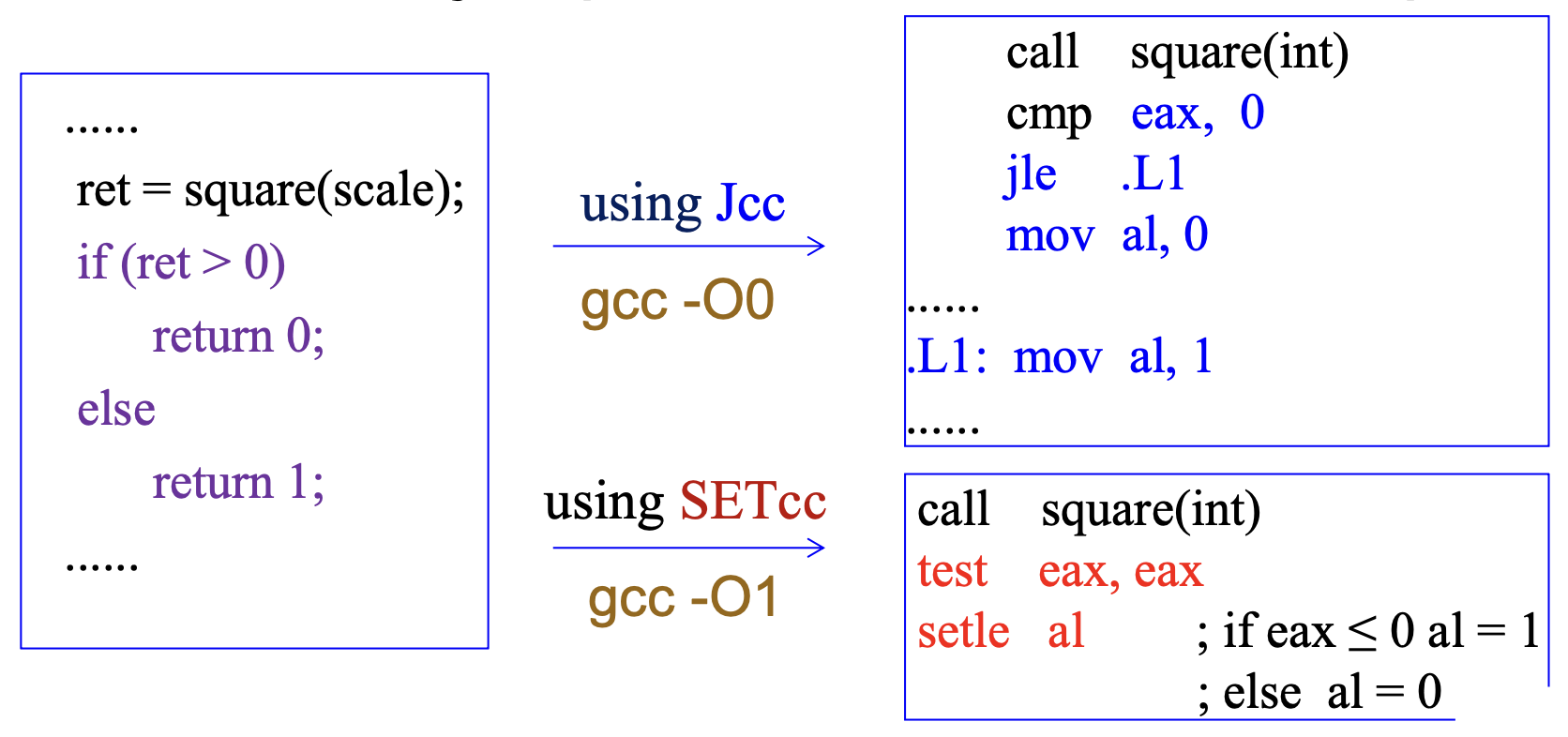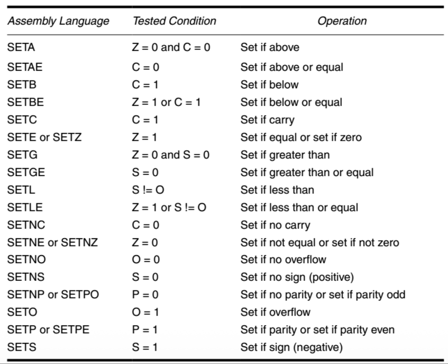 - 条件跳转指令允许基于数值测试做出决策,结果存储在标志位中,然后由条件跳转指令测试