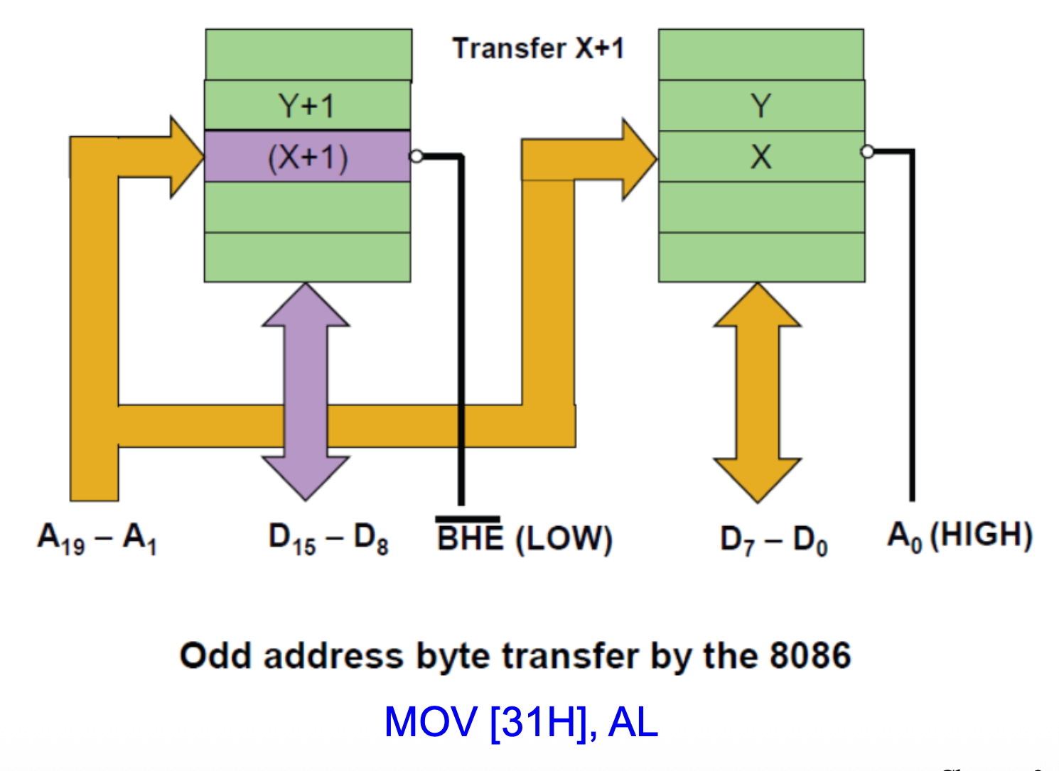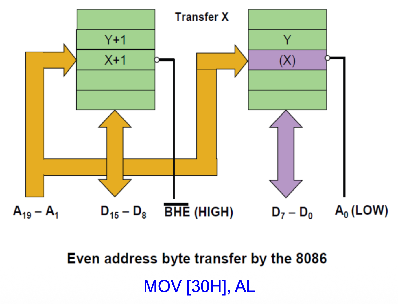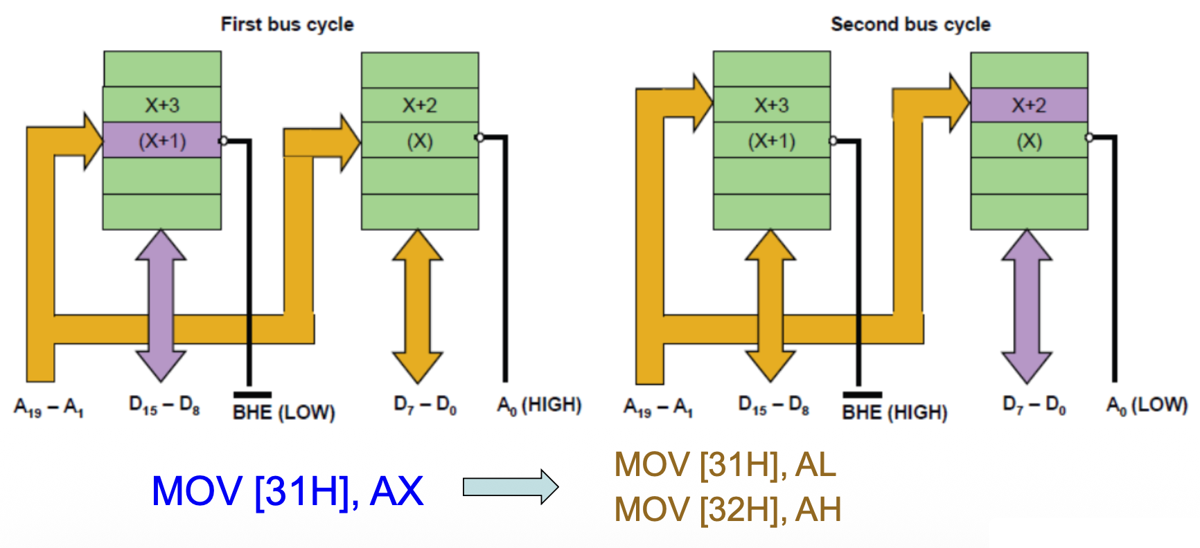 - \(\overline{\text{BHE}} = 0\) 启用高位 / 奇数位的内存库
