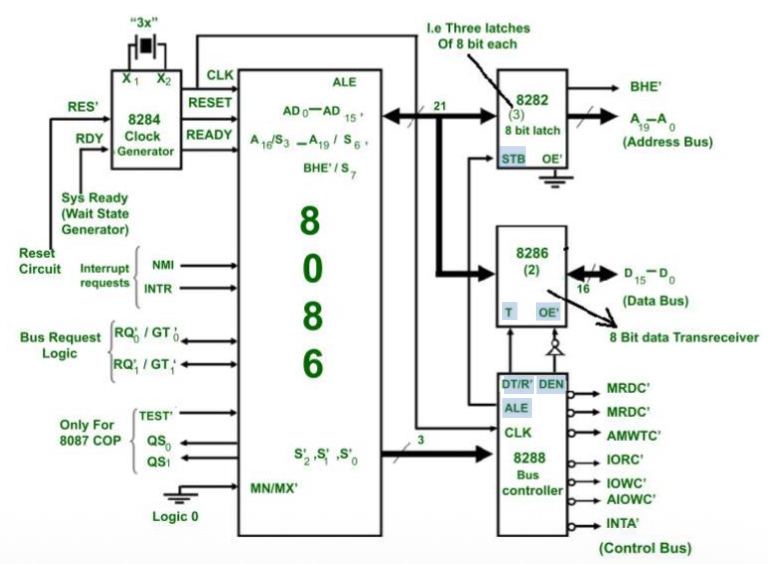- 一些控制信号必须由外部生成(需要外部总线控制器 8288)