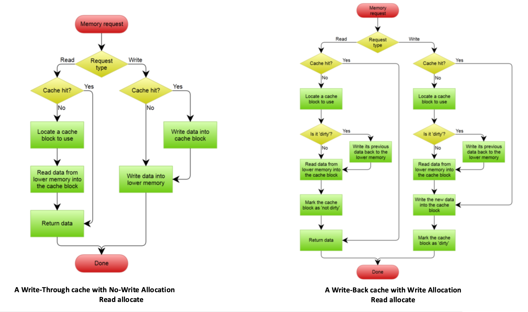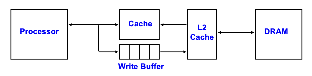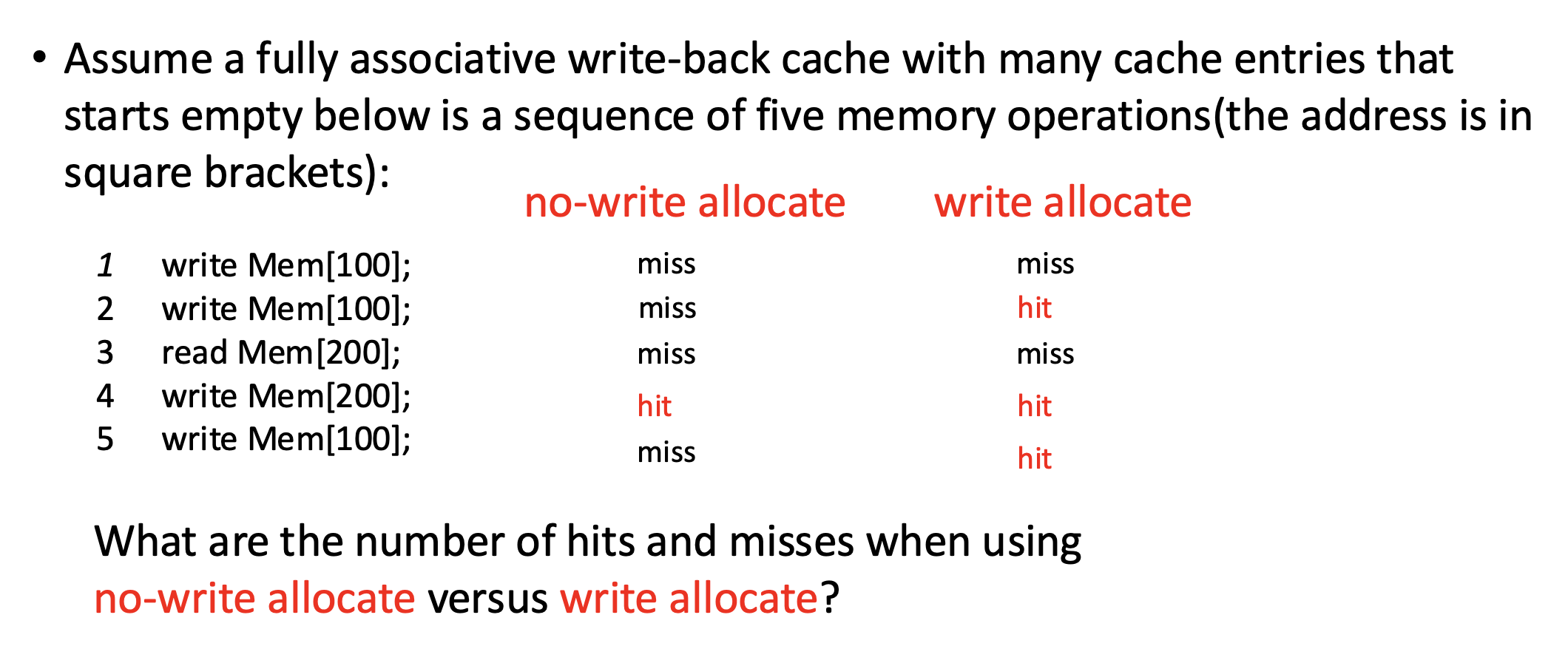 • 理由:内存和处理器访问时间的巨大差异,所以不可能使用写穿策略