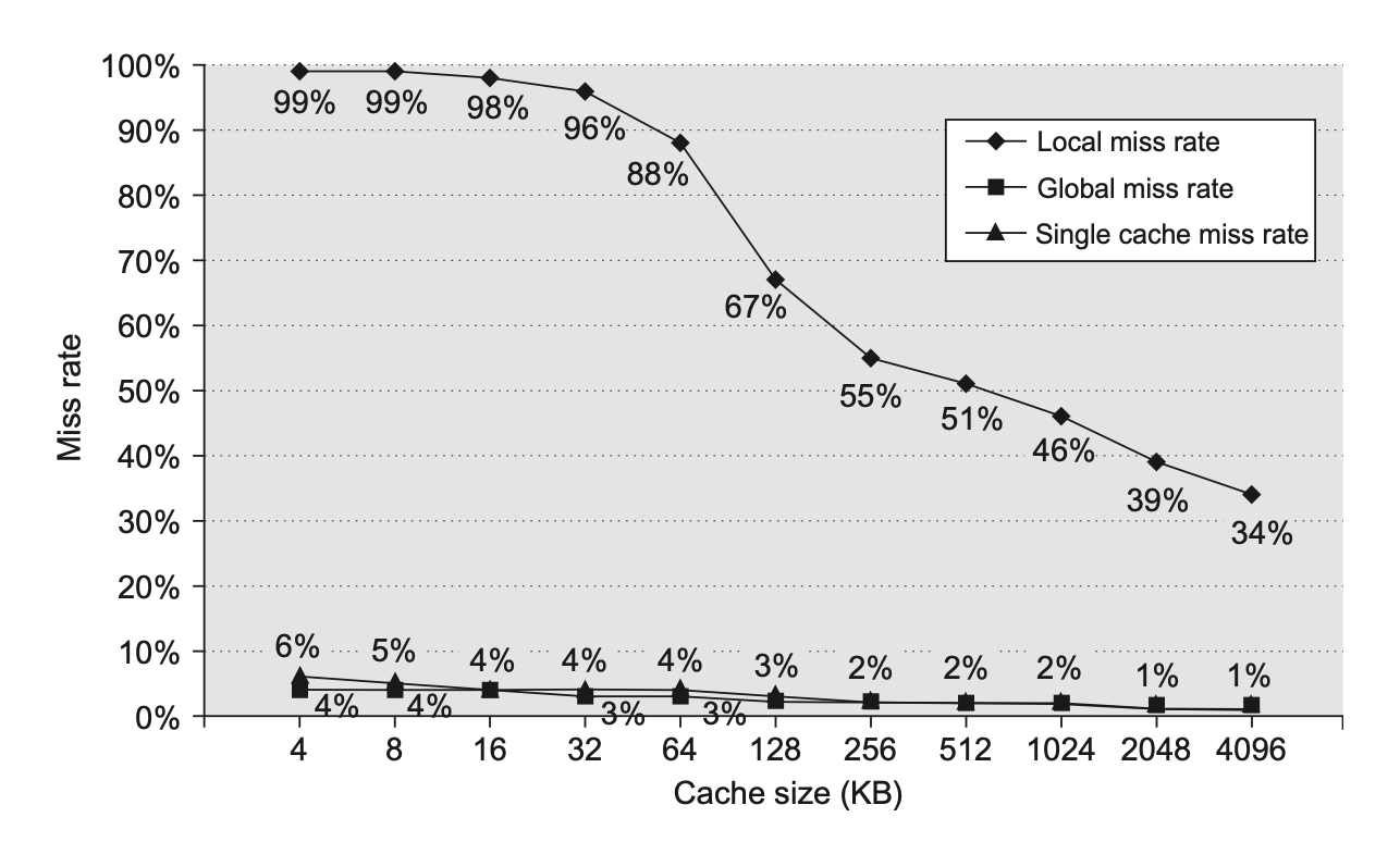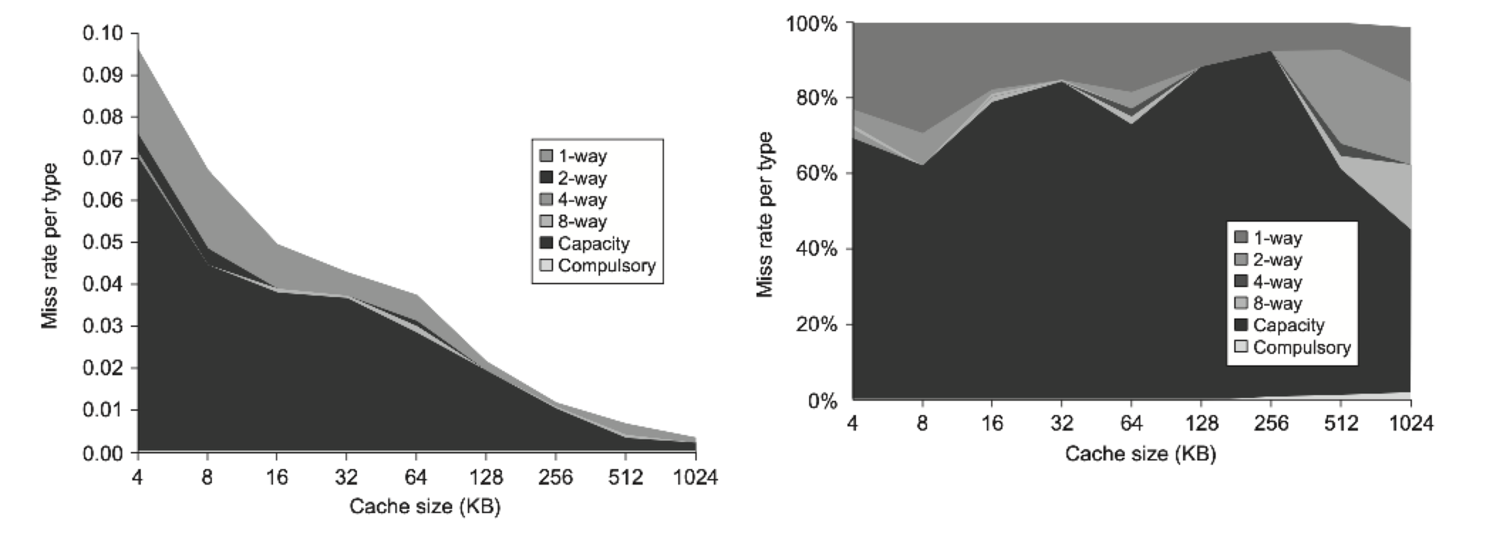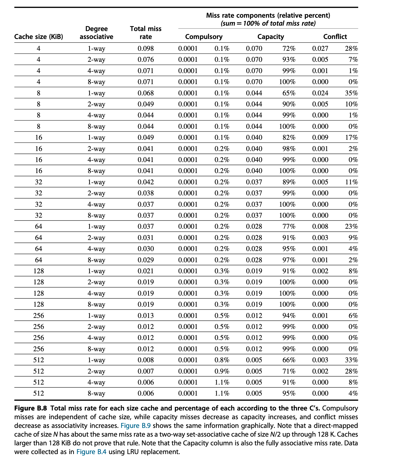 • 减少失效率:增大数据块、增大高速缓存容量、增大相联程度、编译器优化