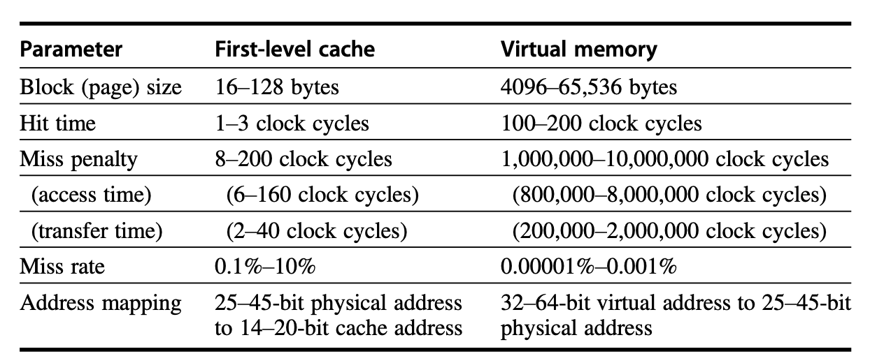 • 高速缓存失效的替换是由硬件控制的,而虚拟内存的替换是由操作系统控制的