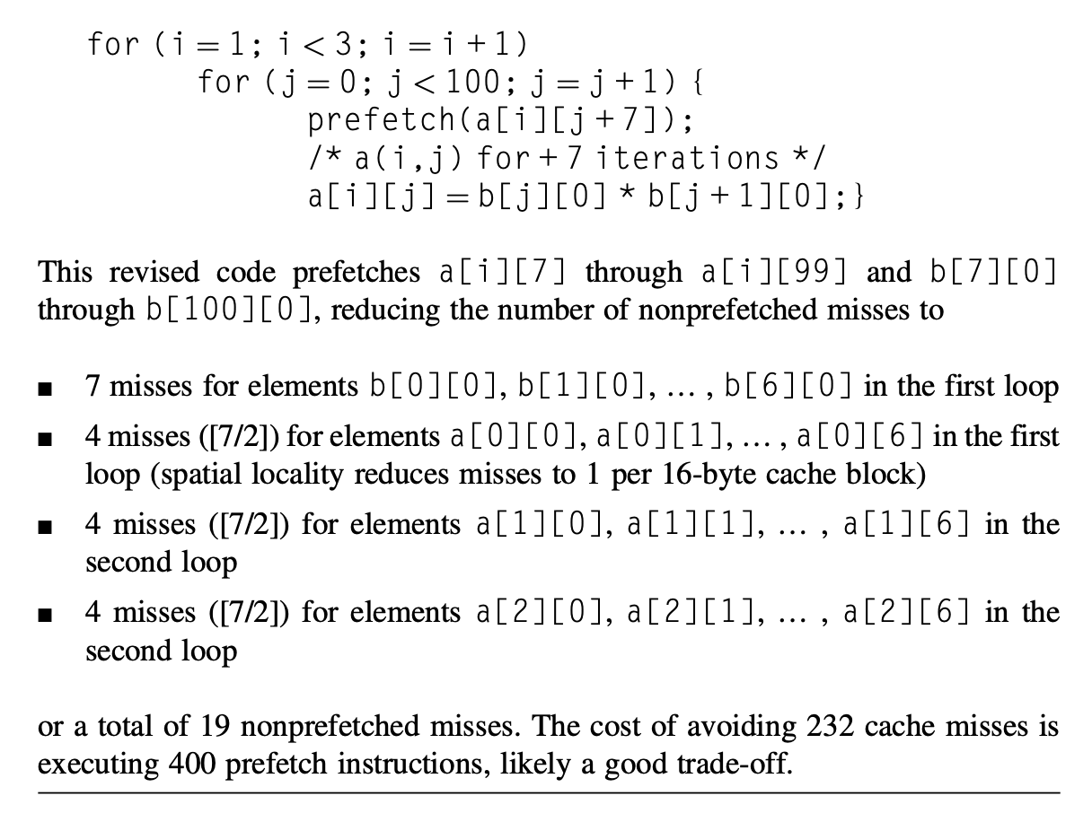 • 空间局部性 (spatial locality):被访问过的数据的邻近数据在不久之后很可能被访问
