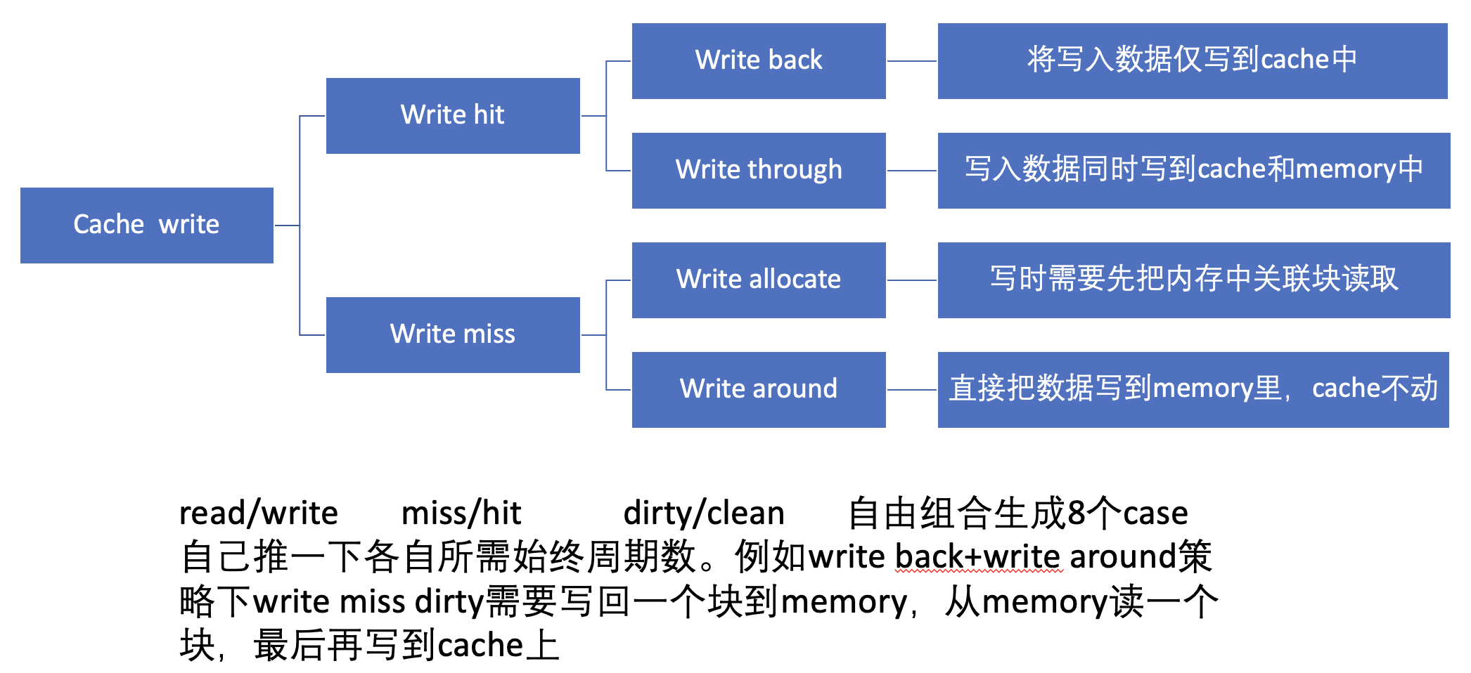 • 写策略:写穿 or 写回,写分配 or 非写分配