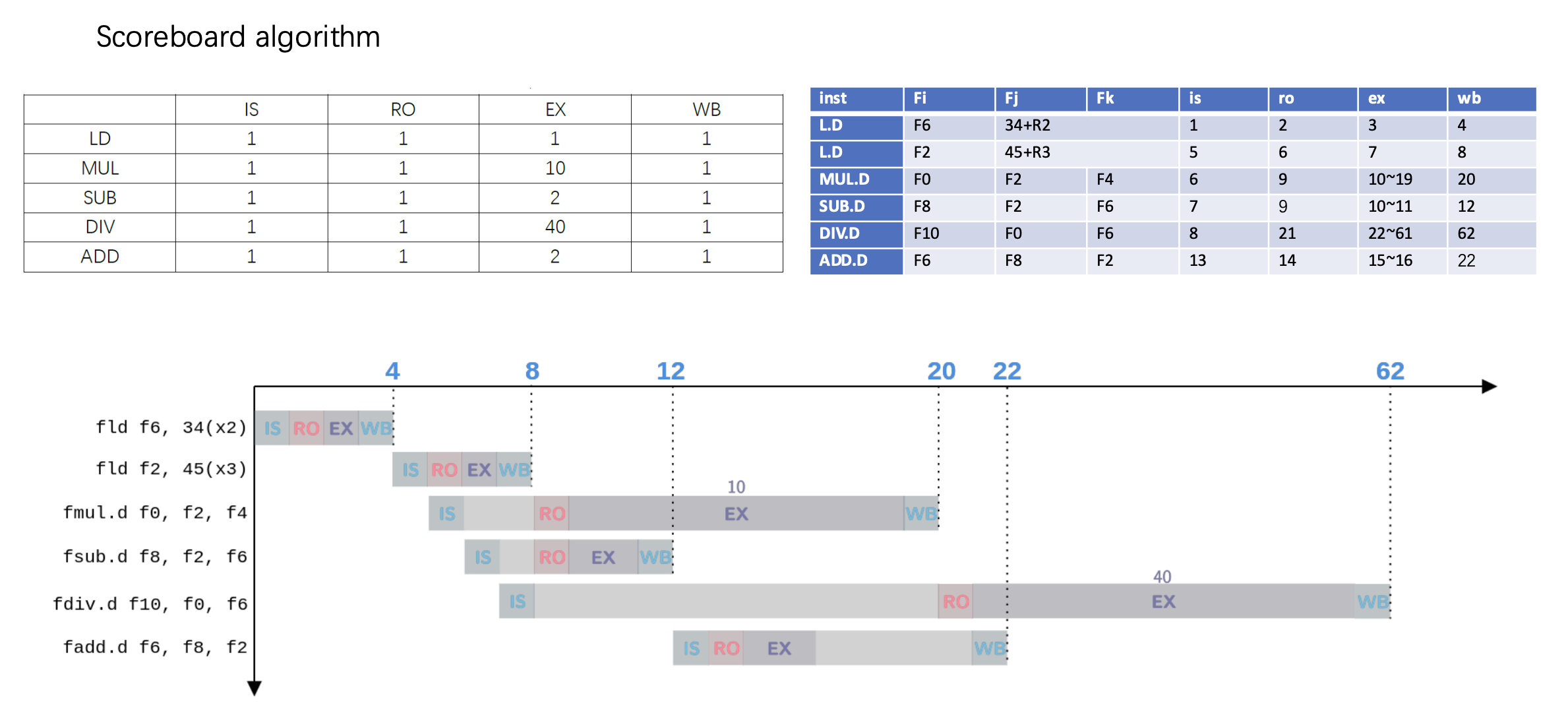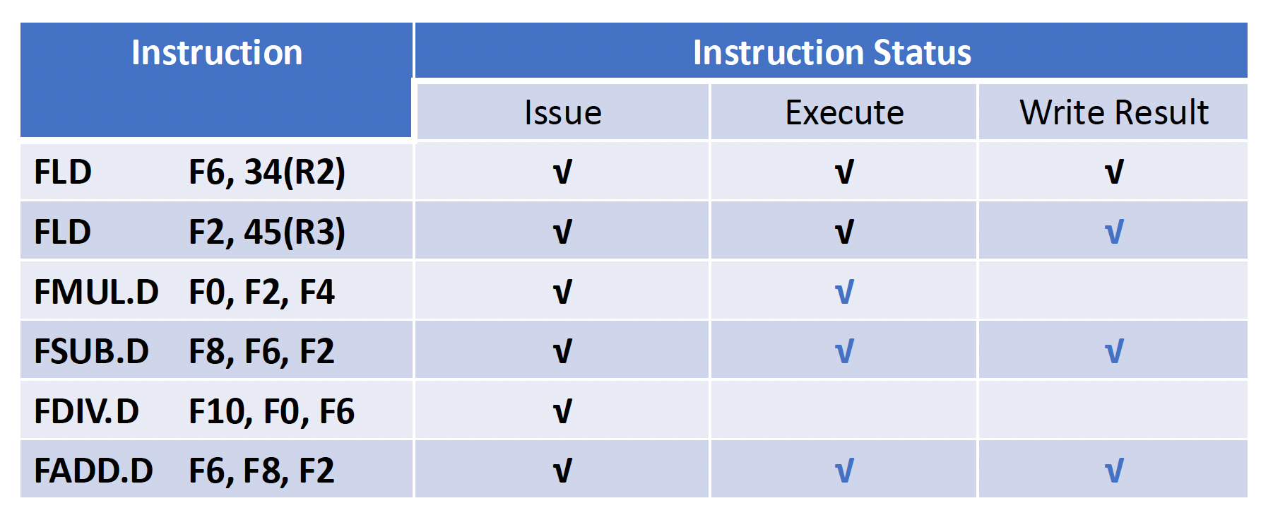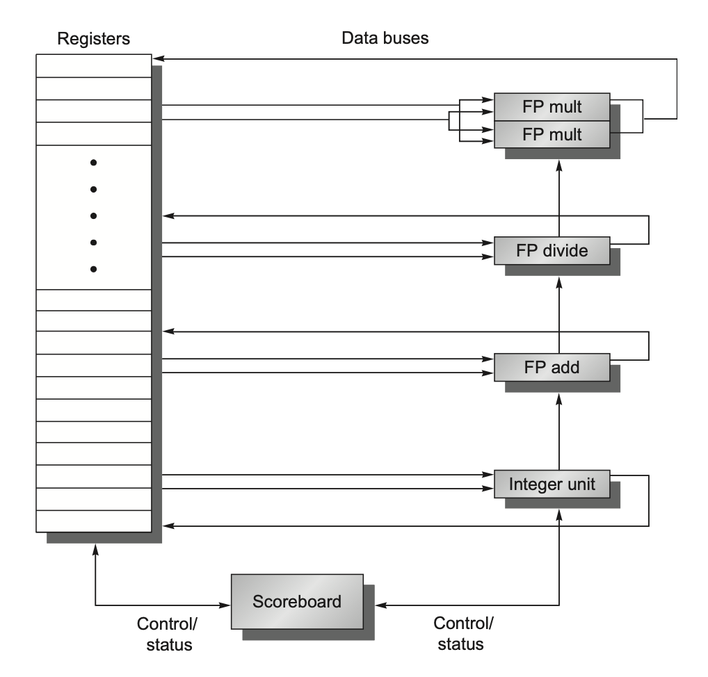 - 功能单元完全被完全流水线化或被复制,这样能确保每个时钟周期下任何类型的操作都能被发射,且没有结构冲突发生