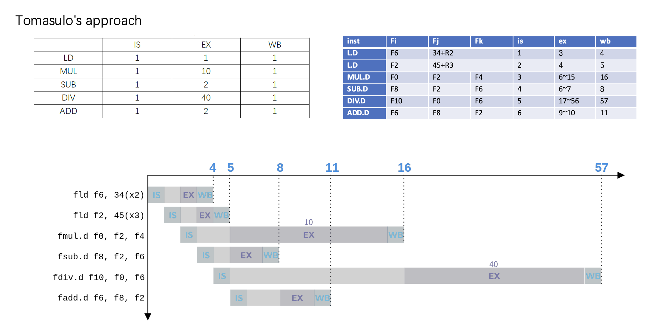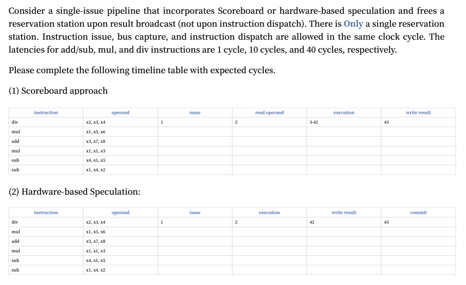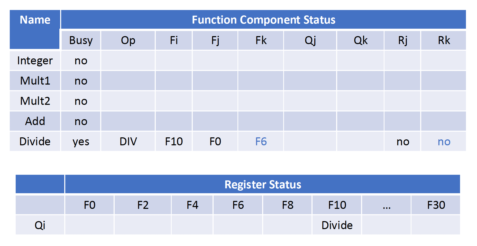 - 功能单元完全被完全流水线化或被复制,这样能确保每个时钟周期下任何类型的操作都能被发射,且没有结构冲突发生