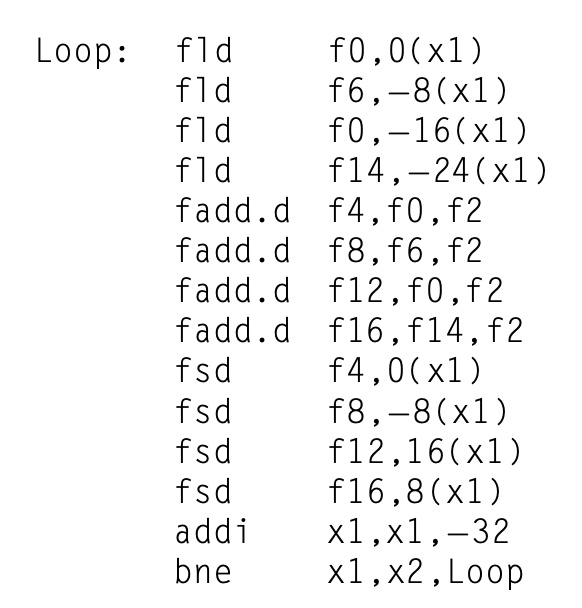 本节我们会介绍编译器是如何通过转变循环来增加可用 ILP 的量——来看下面的例子: