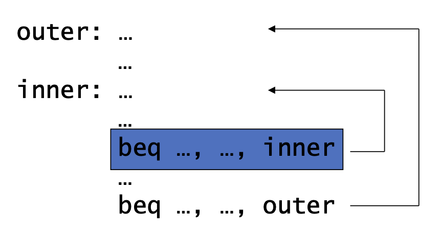 - 跳转地址的基 (base) 地址(PC 值)即为当前的分支指令的地址,跳转地址 = 基地址 + 偏移量