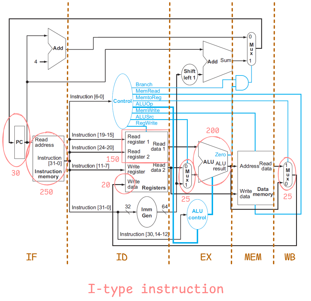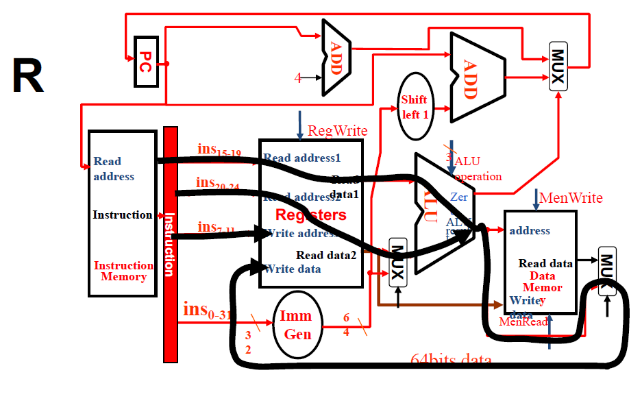 - 下面的 ALU:第二个输入也有两个来源:寄存器或立即数