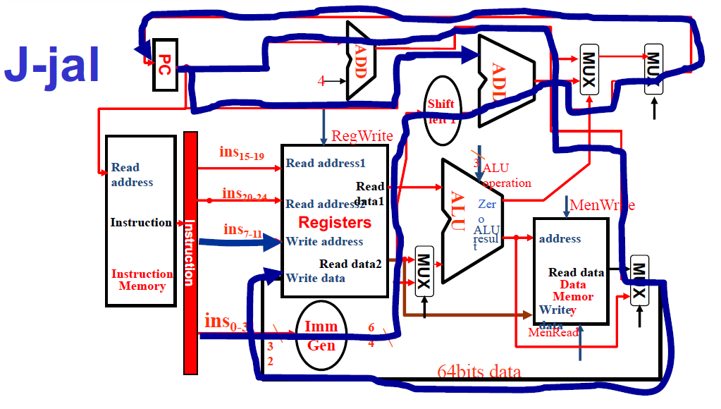 - 无条件分支指令:计算跳转地址(但不是在 ALU 上完成的)