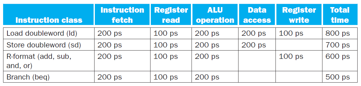 - 时钟周期(clock cycle time) 和每条指令周期数 (CPI):取决于 CPU(第 4 章,也就是接下来要讲的内容)