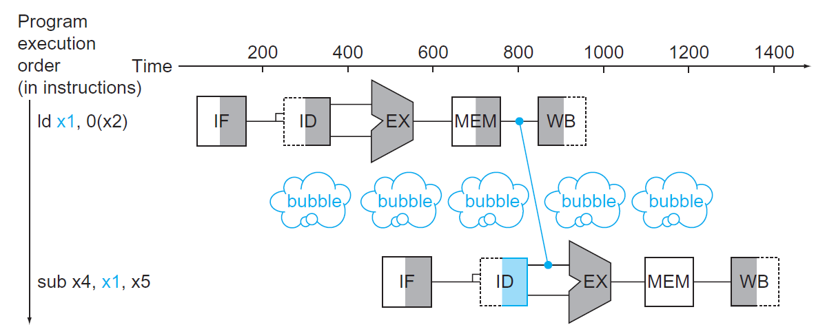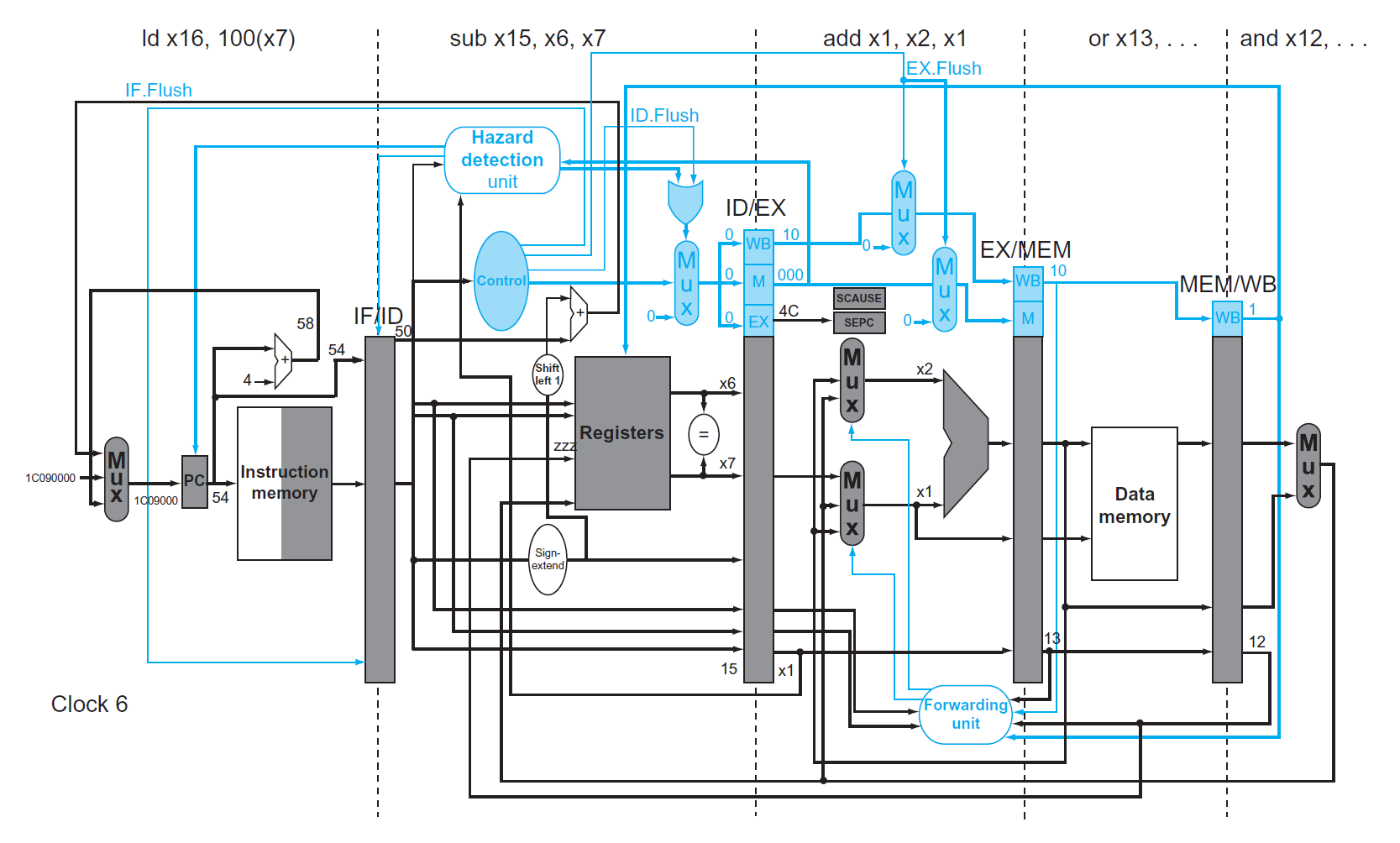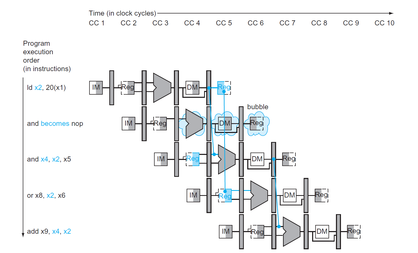 - 此时的 CPI = 4 / 5 = 0.8,低于理论上的 0.5,所以效率不是很高