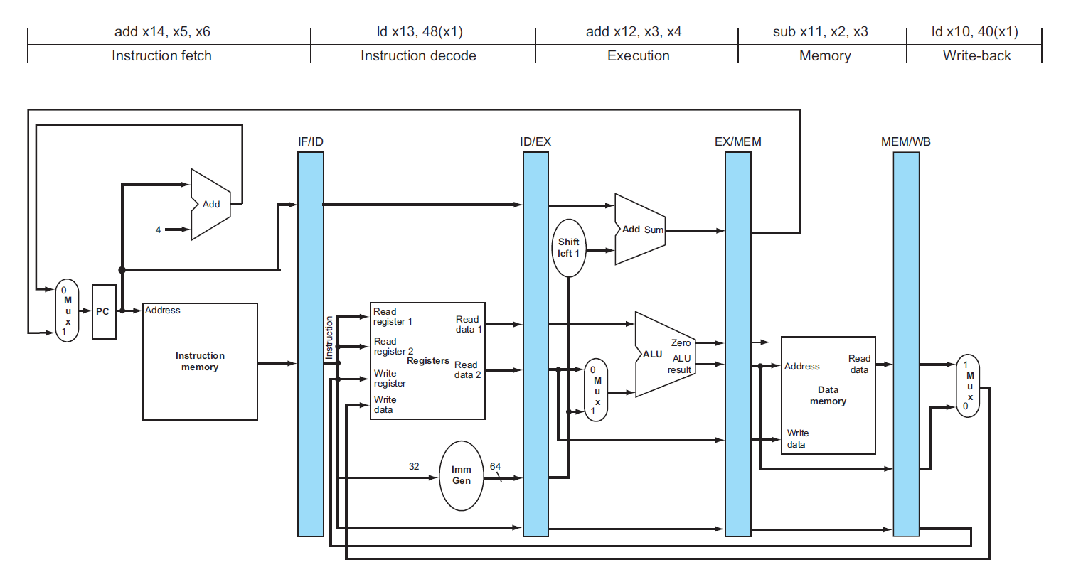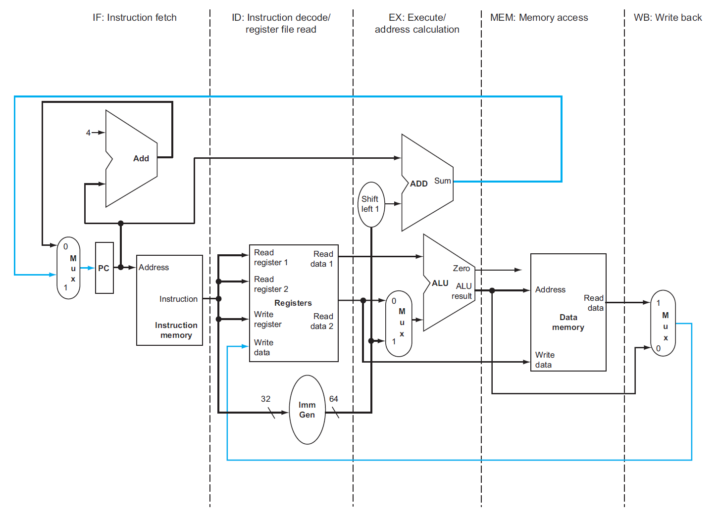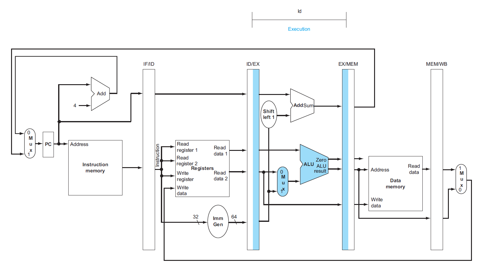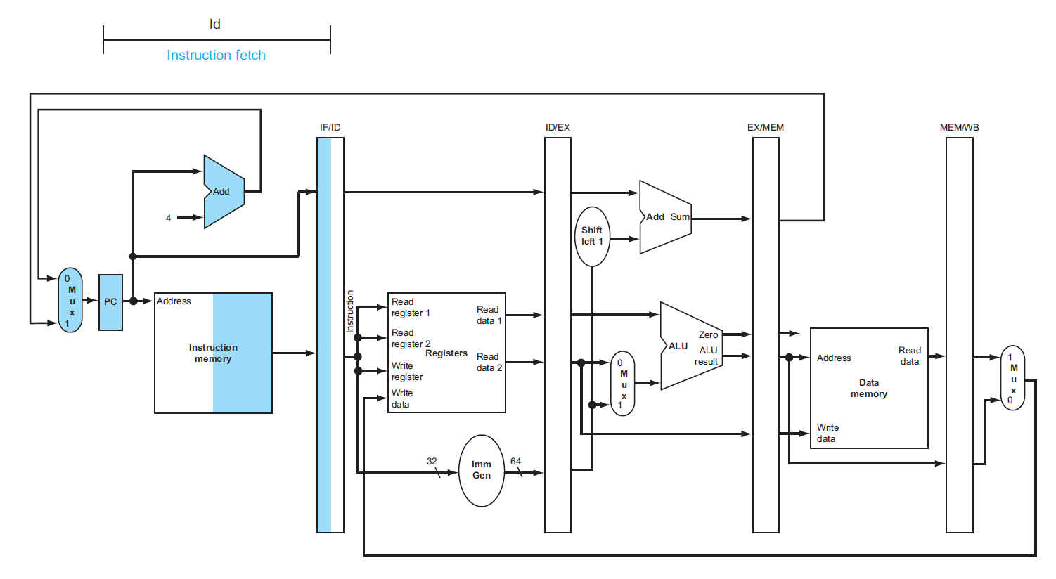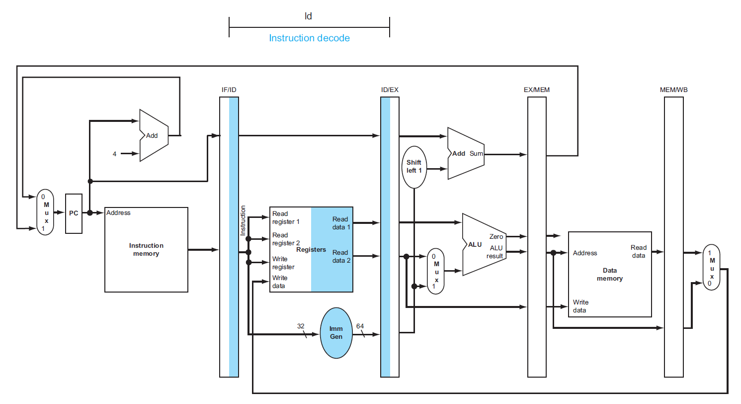 ) ,从指令内存中获取当前周期下需要执行的指令 - 译码 (ID):根据指令的字段识别指令类型,并从单个或多个寄存器内读取数据(load 指令只需读取一个寄存器即可