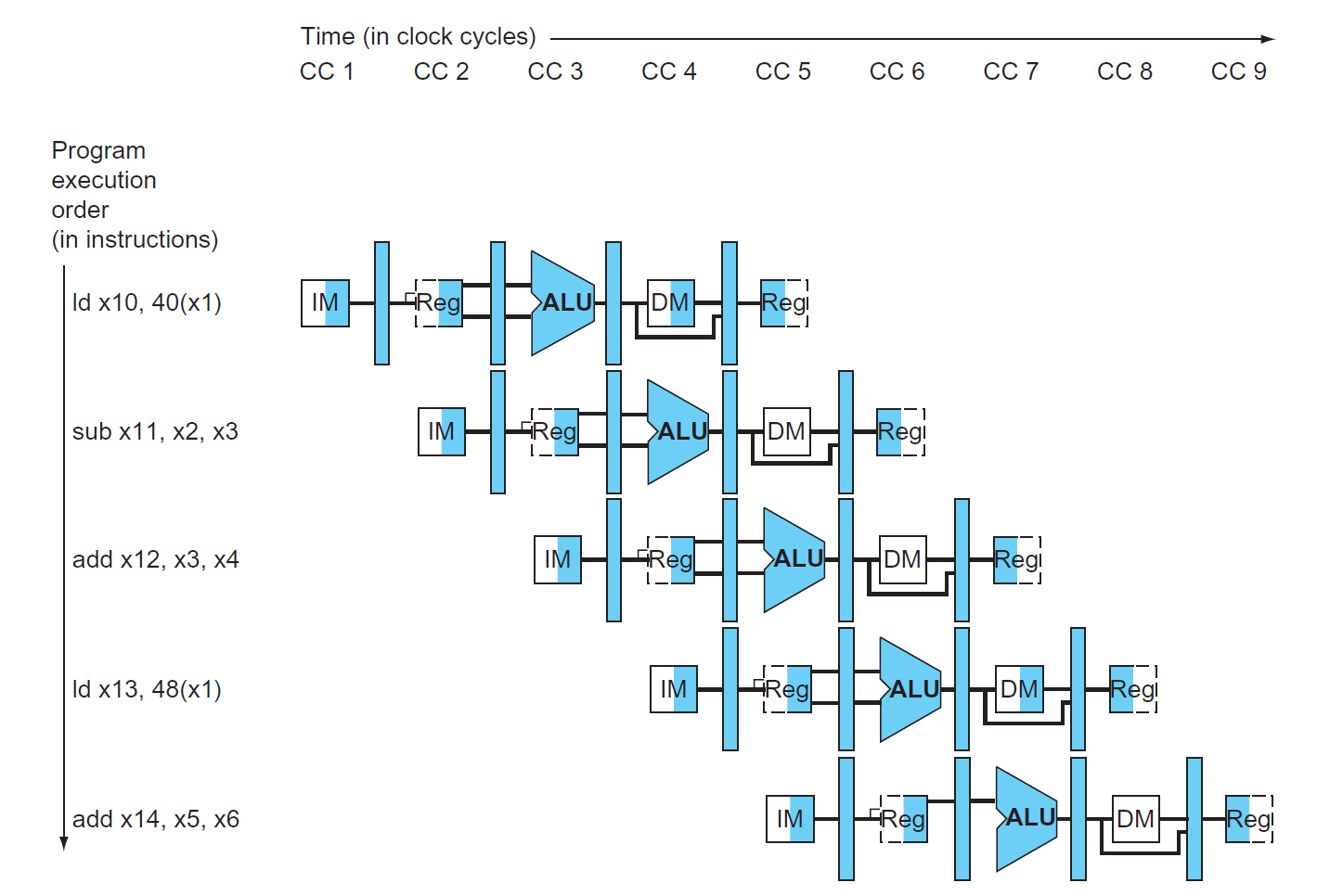 内存层级的缺失也会限制流水线运行的能力,比如内存的时延和有限带宽等
