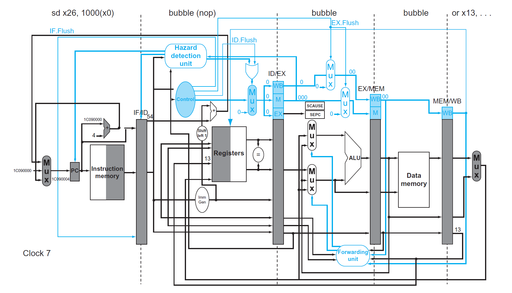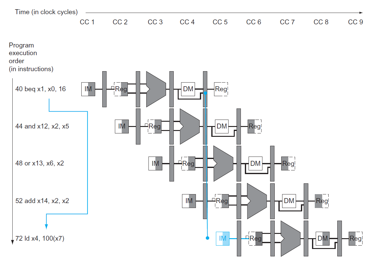 - 分支指令:预测分支结果,继续发射后面的指令,但是要等到分支结果出来后才能将后面的指令继续提交
