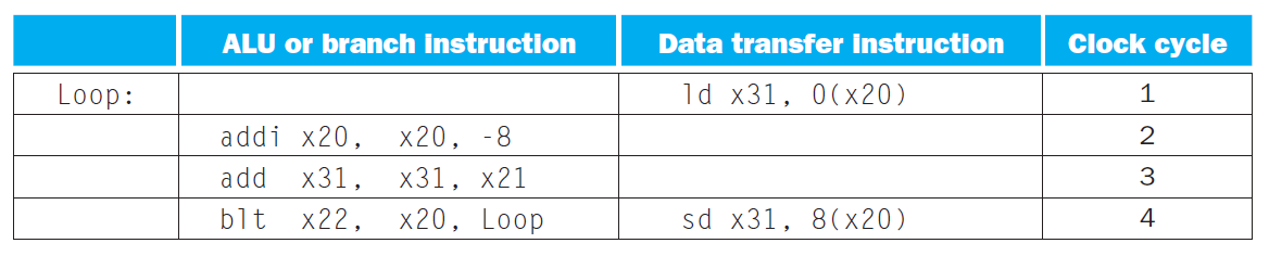- 规定其中一条指令属于 ALU 或分支指令,另一条指令属于加载或存储指令