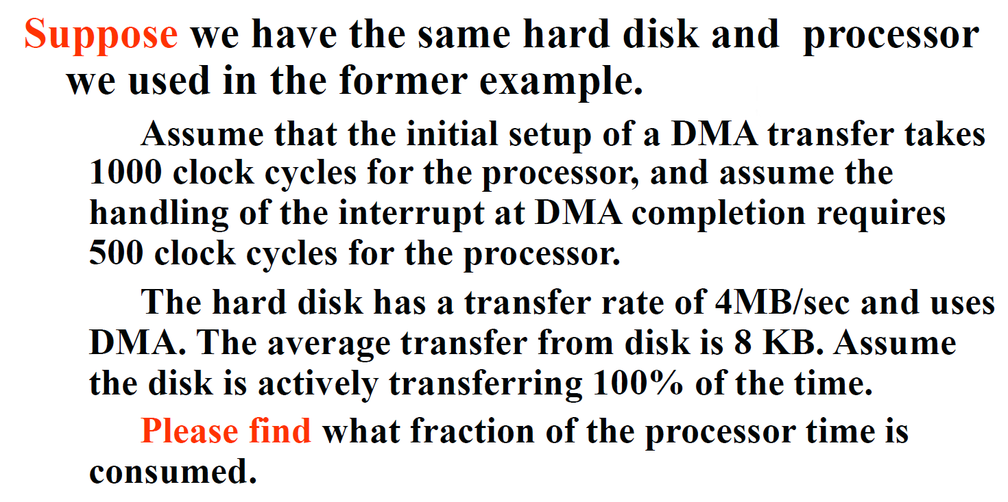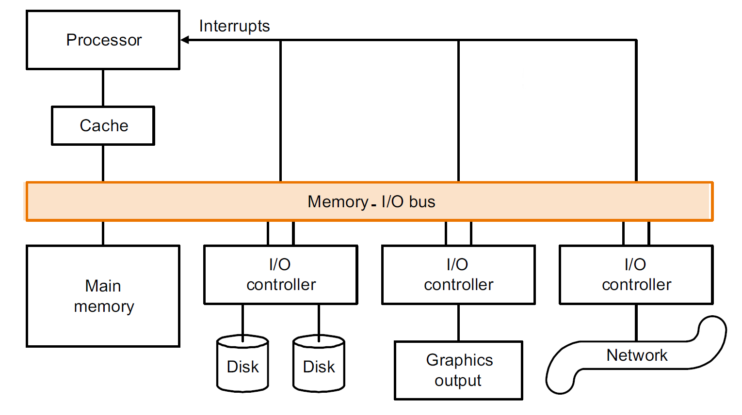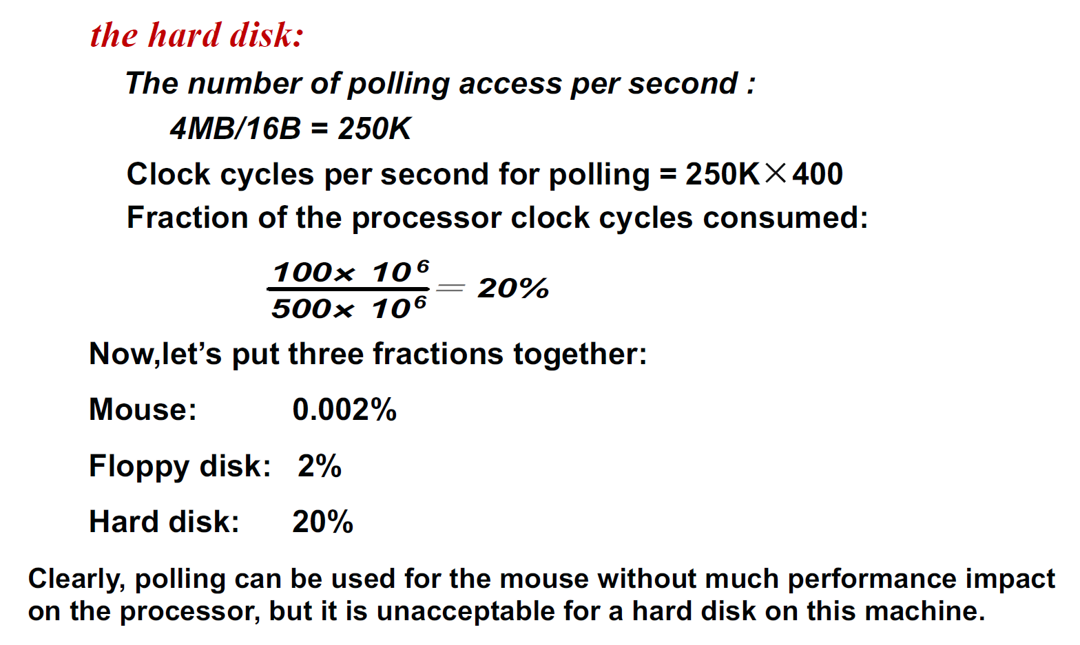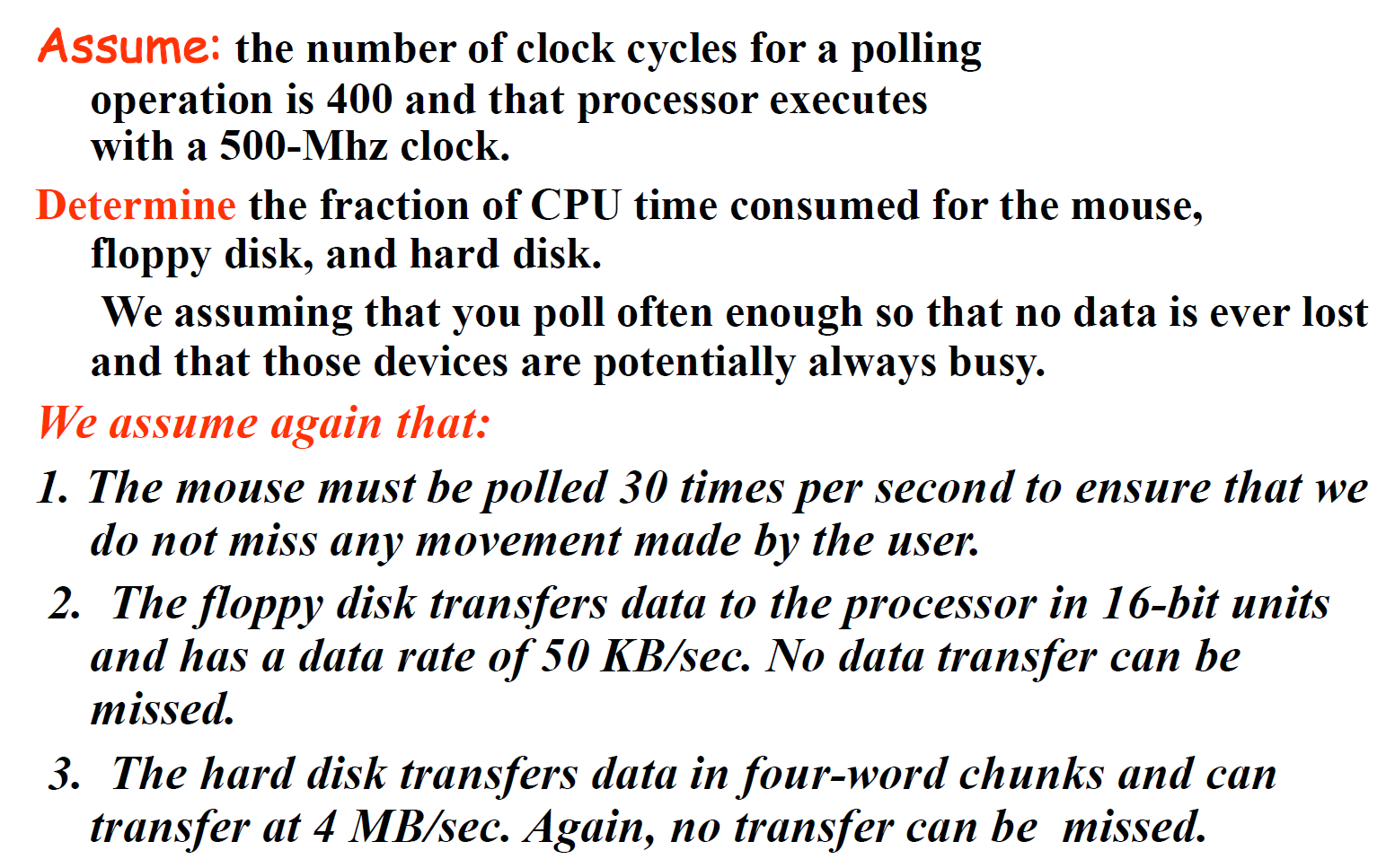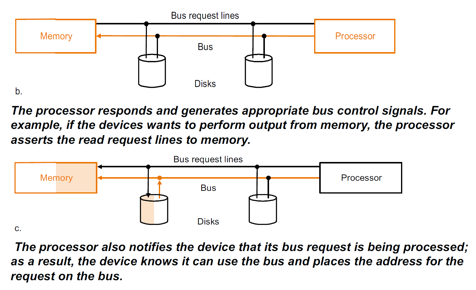 - 与处理器和存储器的通信:轮询、中断、DMA