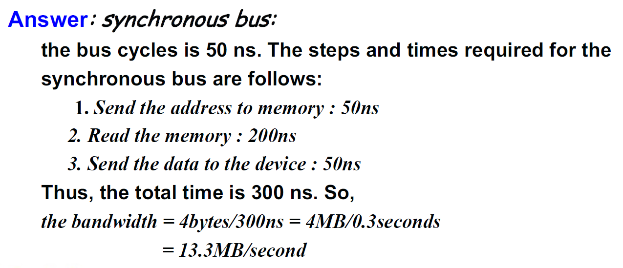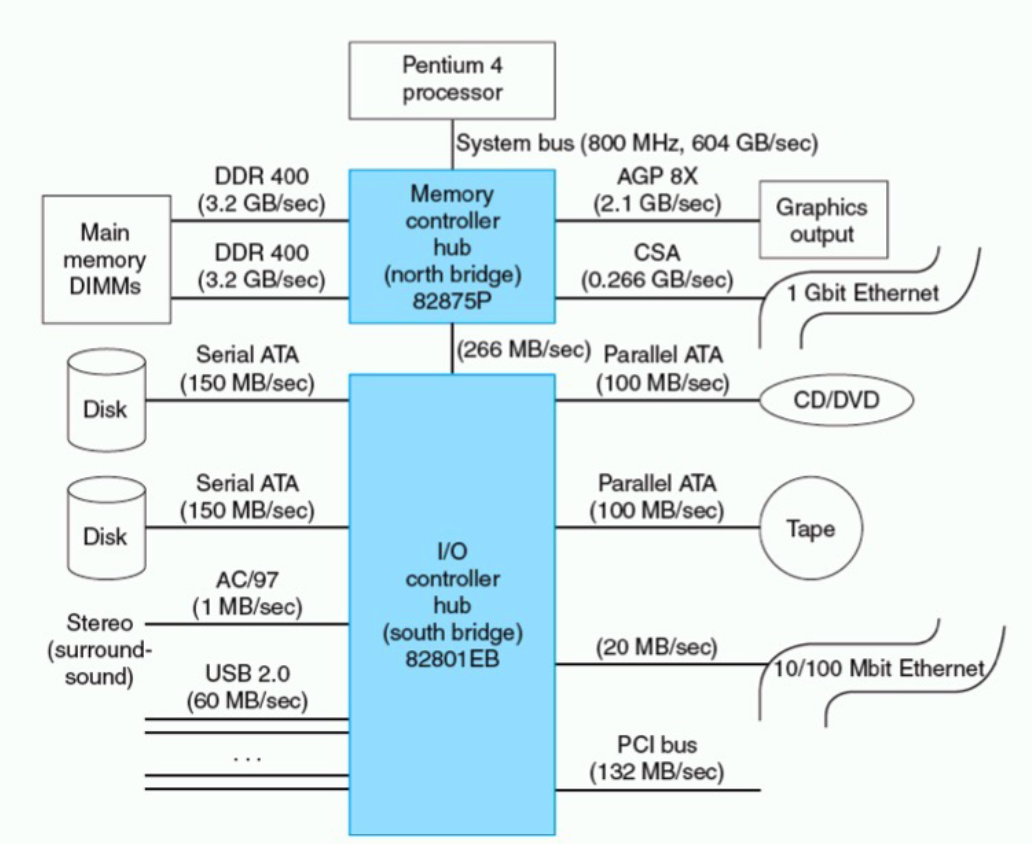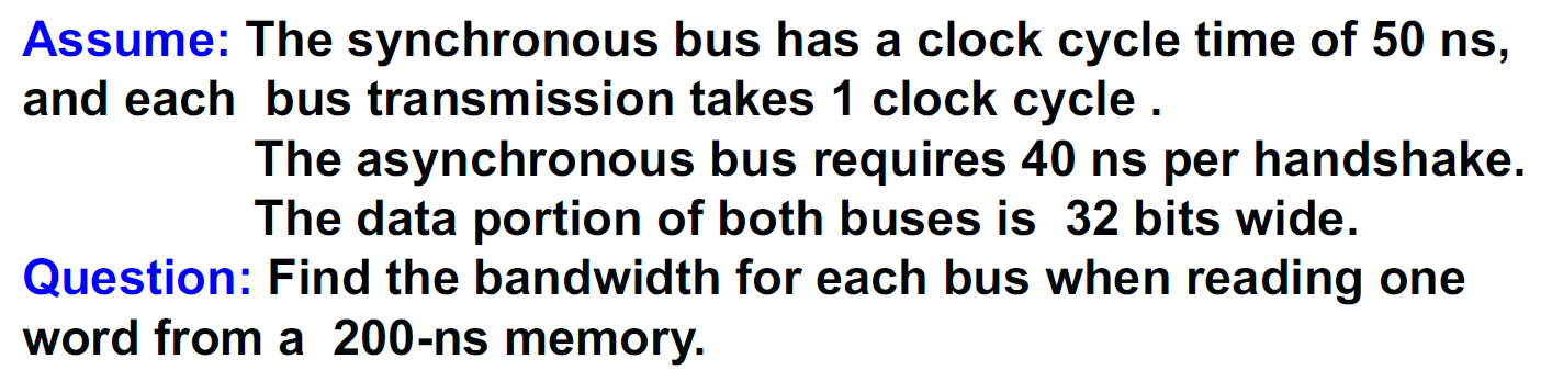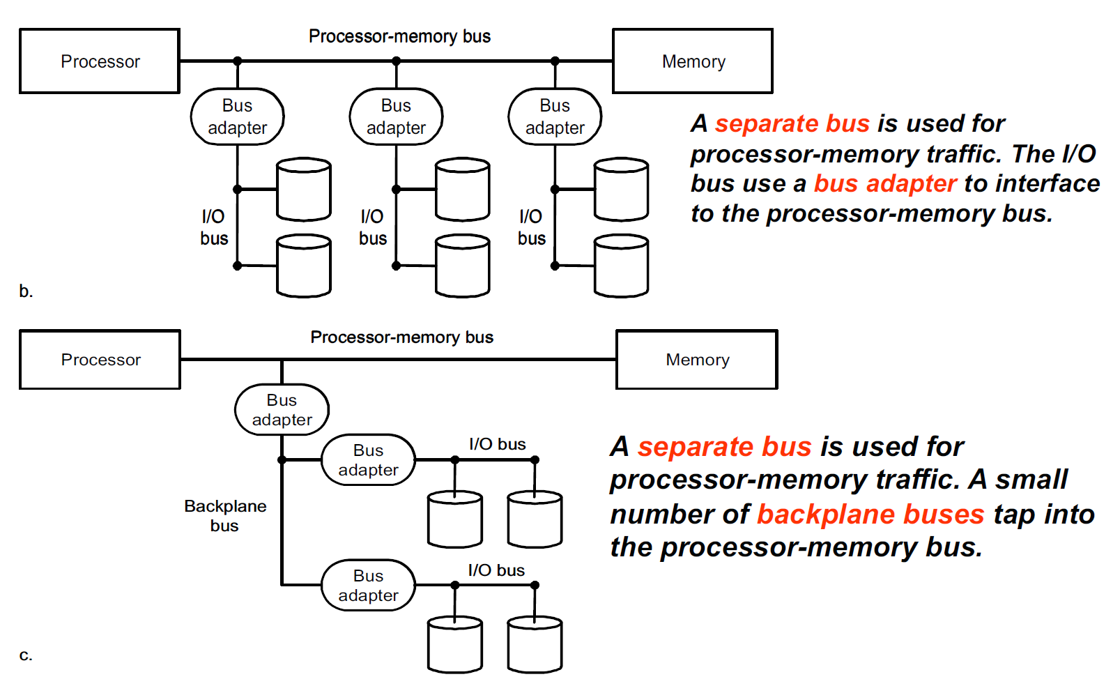 - 同步总线:使用时钟和固定的协议,快而小,但是所有设备需要保持相同的运作速率,且为避免时钟偏斜 (clock skew) 问题,总线需要短一些