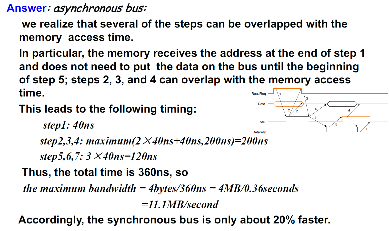 ReadReq处于高电平时,内存从数据总线中读取地址,执行读操作,然后抬高Ack的电平,告诉设备它看到了ReadReq信号 - I/O 设备看到