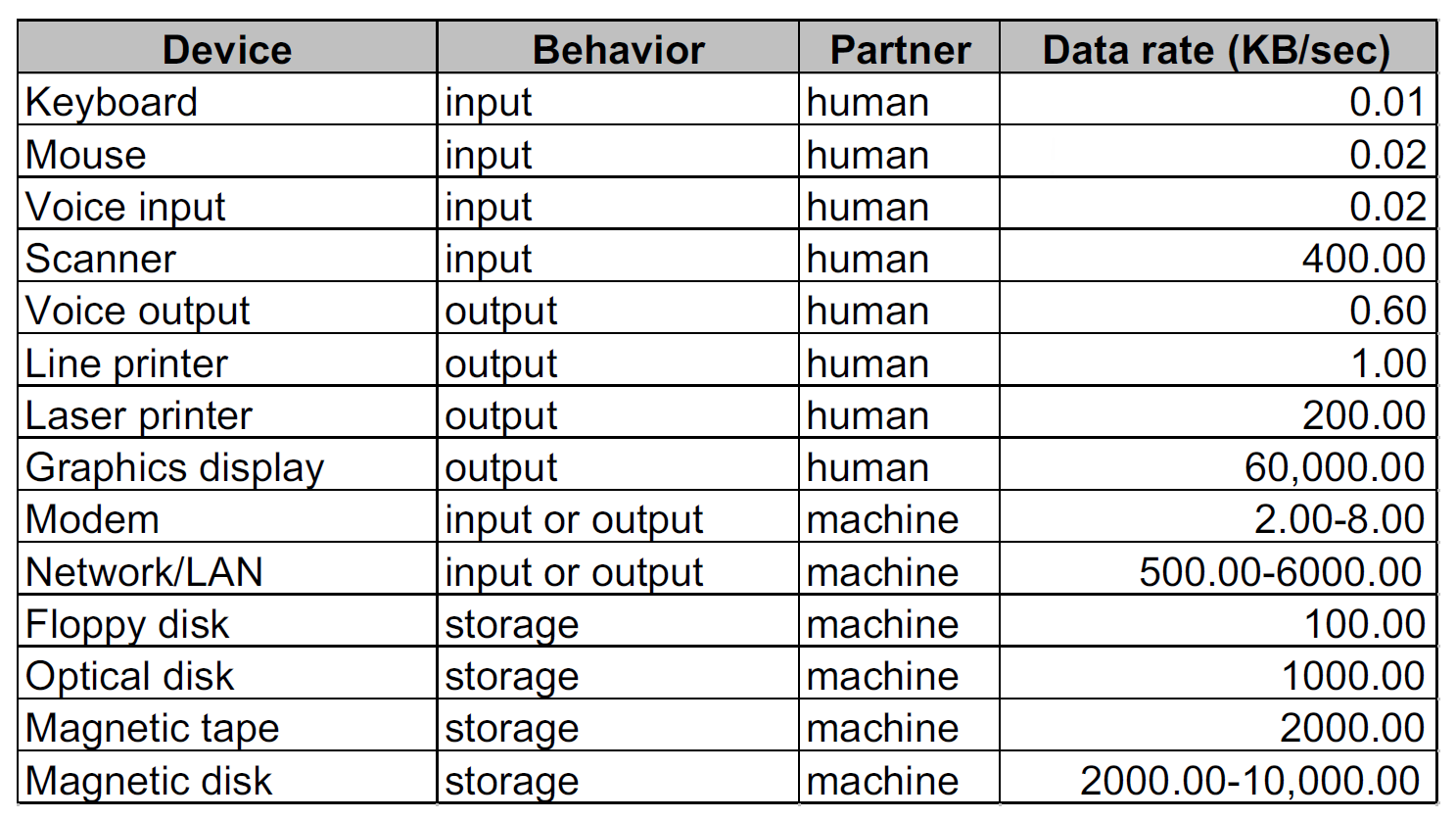 ) 、输出(仅写一次,不可读)或存储(可重读或重写) - 搭档(partner):I/O 设备的另一端可以是机器,也可以是人类