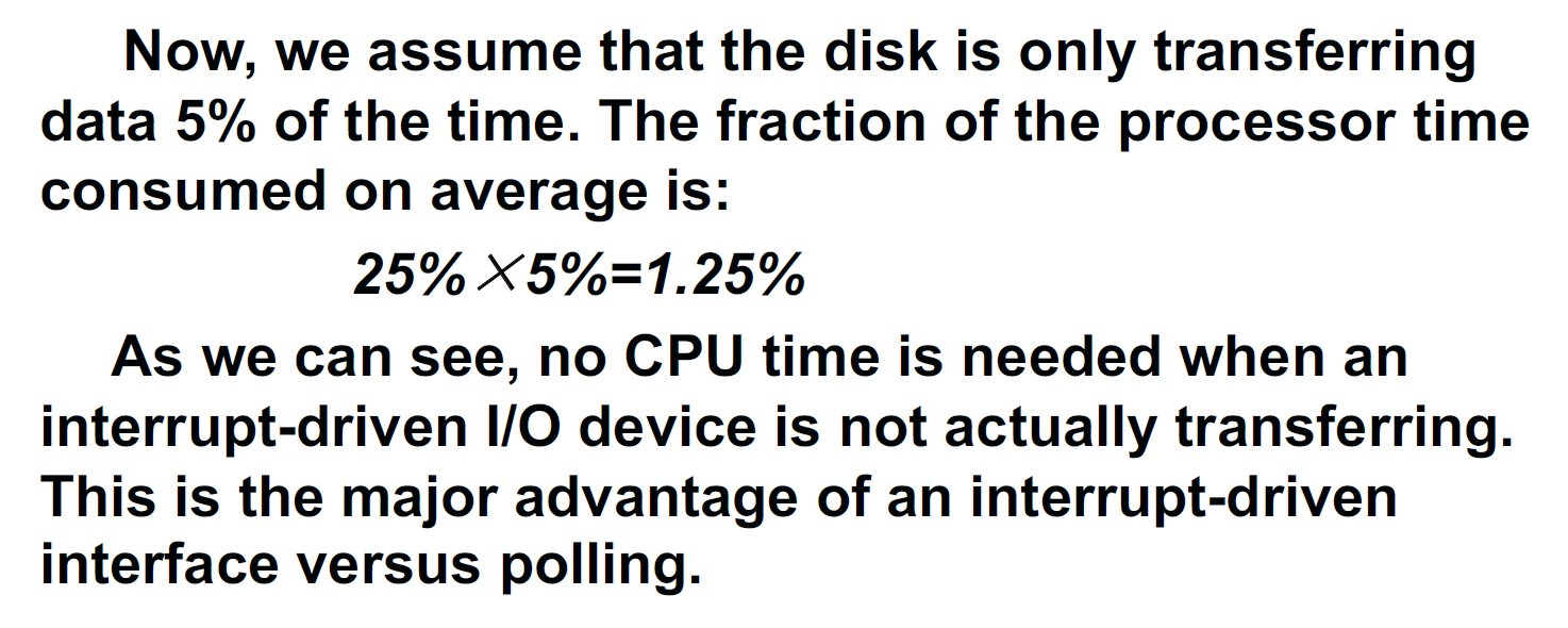 - 中断驱动的 I/O 模式:它的优点是并发操作 (concurrent operation)