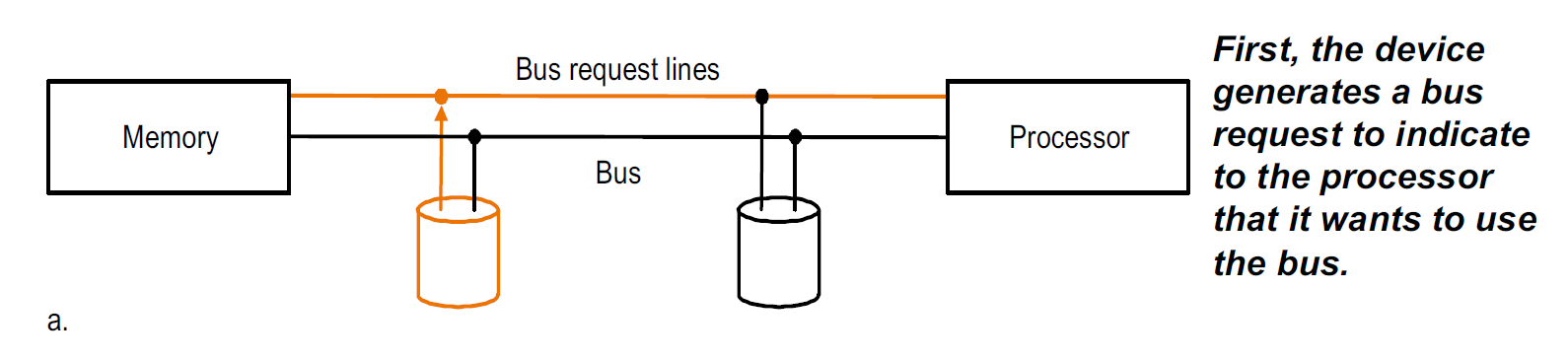 - 因此需要用一个总线控制器(bus master) 来发起和控制所有的总线请求