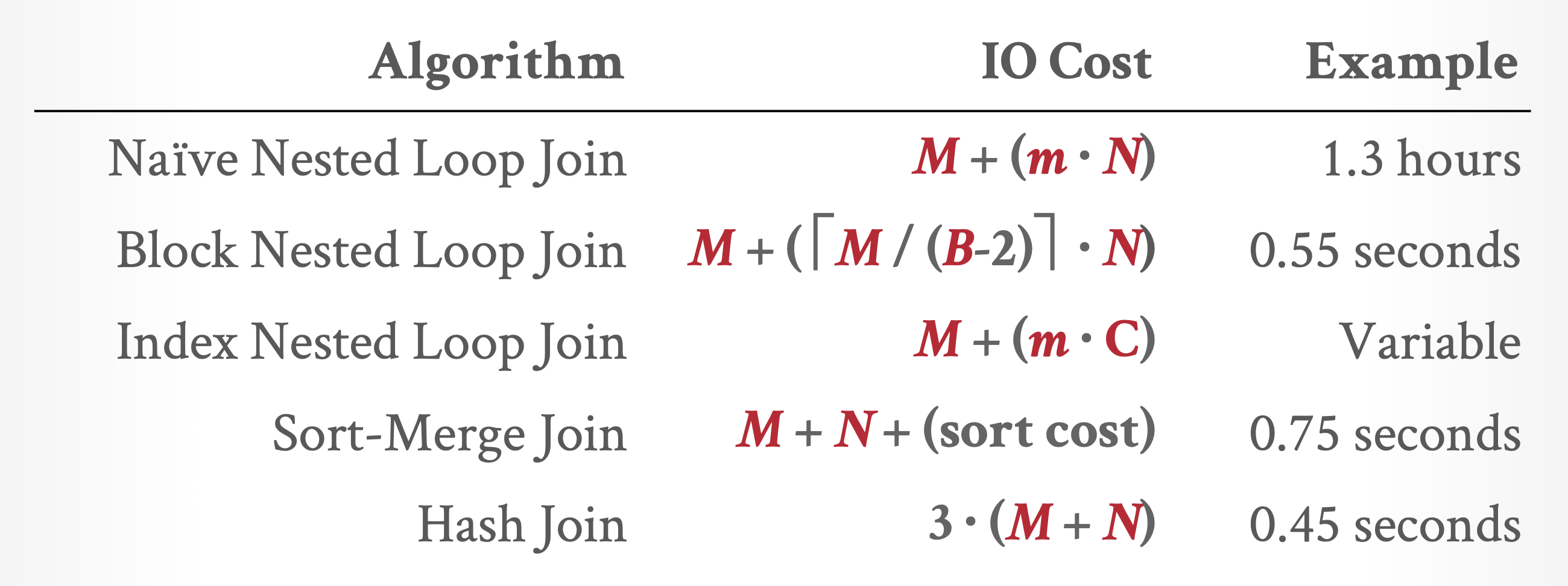 - 尽管我们可以在成本计算时考虑得更细,区分数据块读取和写入的成本,但为了简洁,我们就忽视这个细节问题了
