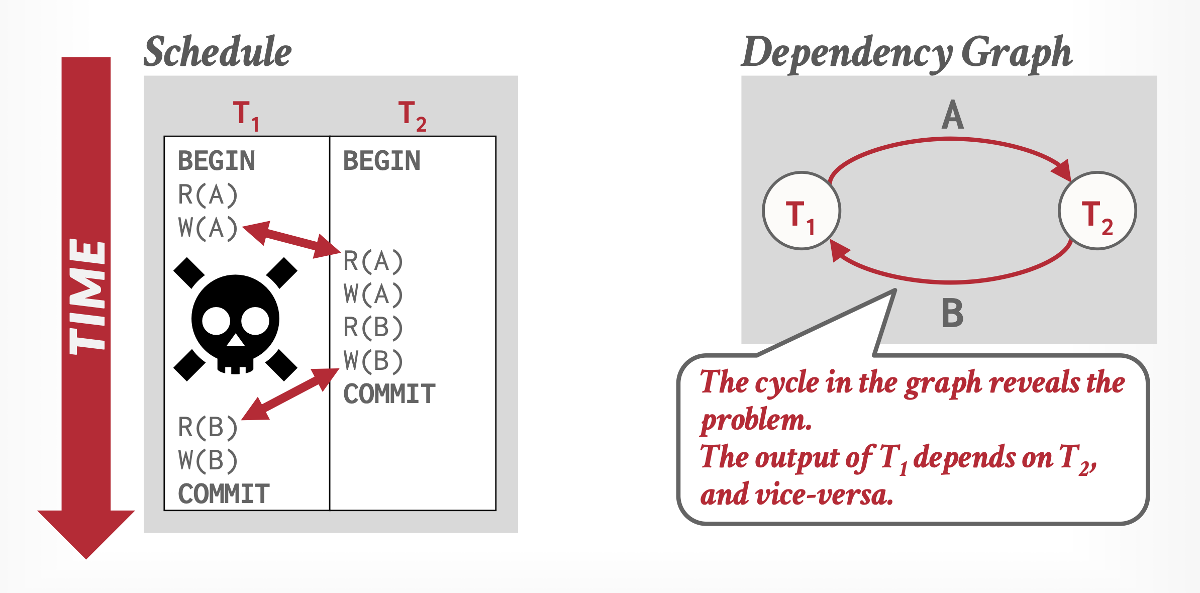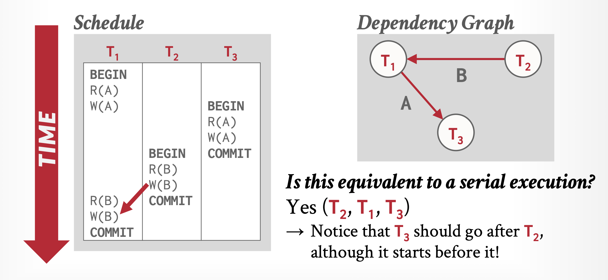 如果 \(T_i \rightarrow T_j\) 存在于优先图中,那么在任何和 S 等价的串行调度 S' 中,\(T_i\) 必须出现在 \(T_j\) 前面。