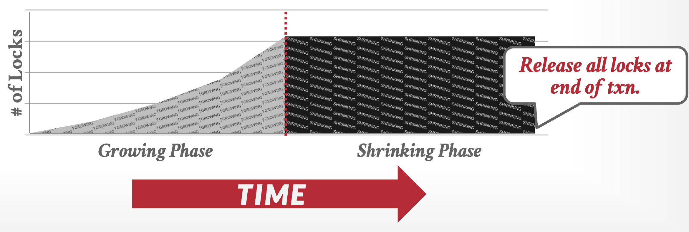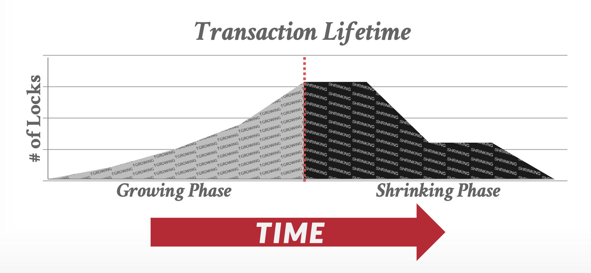 ) ,但一定不能释放任何已有的锁 - 收缩阶段(shrinking phase):事务可能会释放锁(也可能对原有锁进行降级