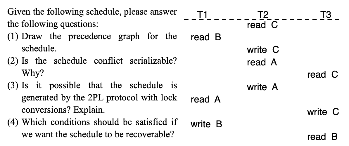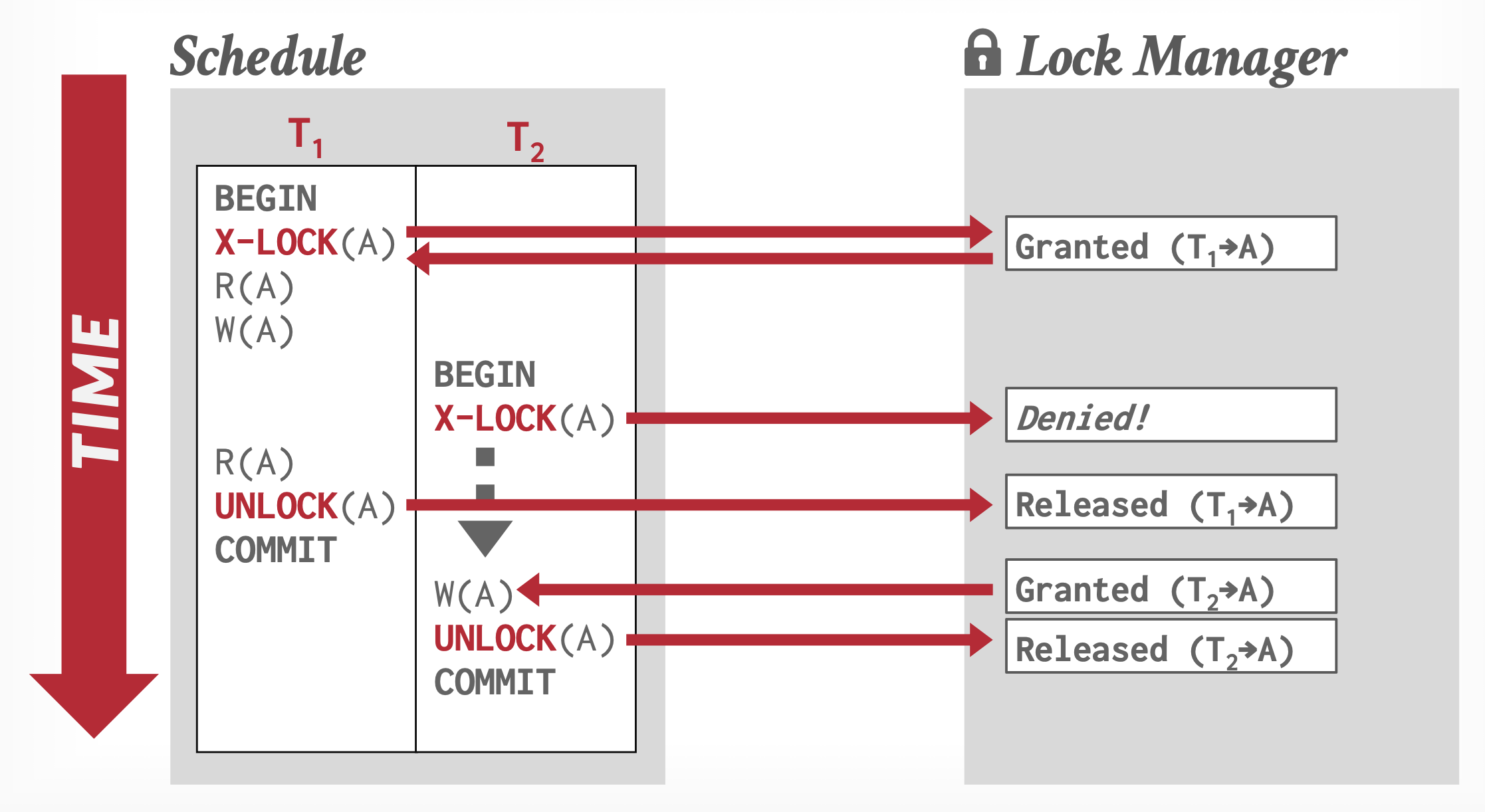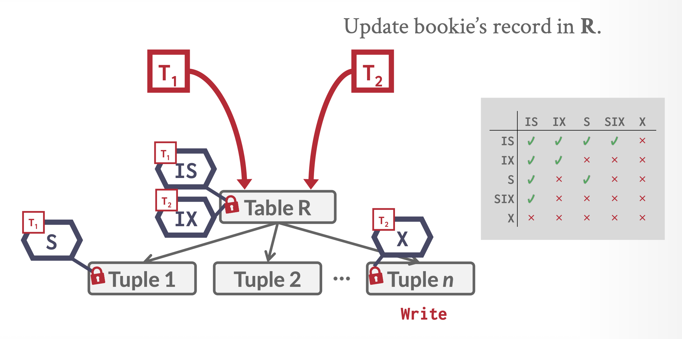 comp(A, B)= false,那么称 \(T_i\) 先于(precedes) \(T_j\),记作 \(T_i \rightarrow T_j\)- 指令之间的冲突对应锁模式的不兼容性