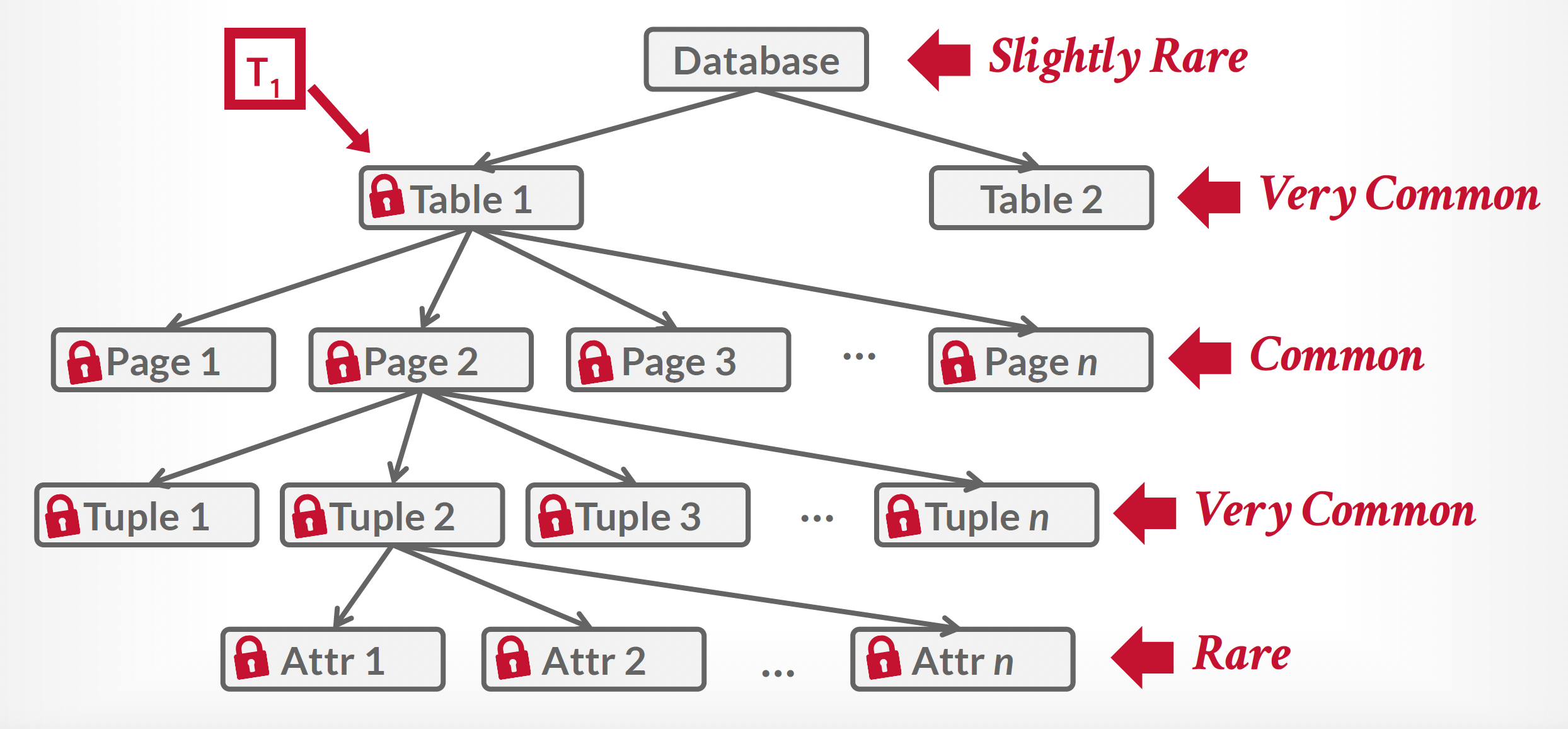 - 在事务提交或中止后,该事务获得的所有锁都会被解锁