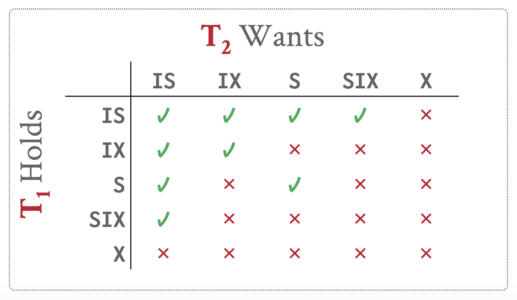 可以看到,只有共享模式是相互兼容的,而一旦涉及到独占模式就是不兼容的。