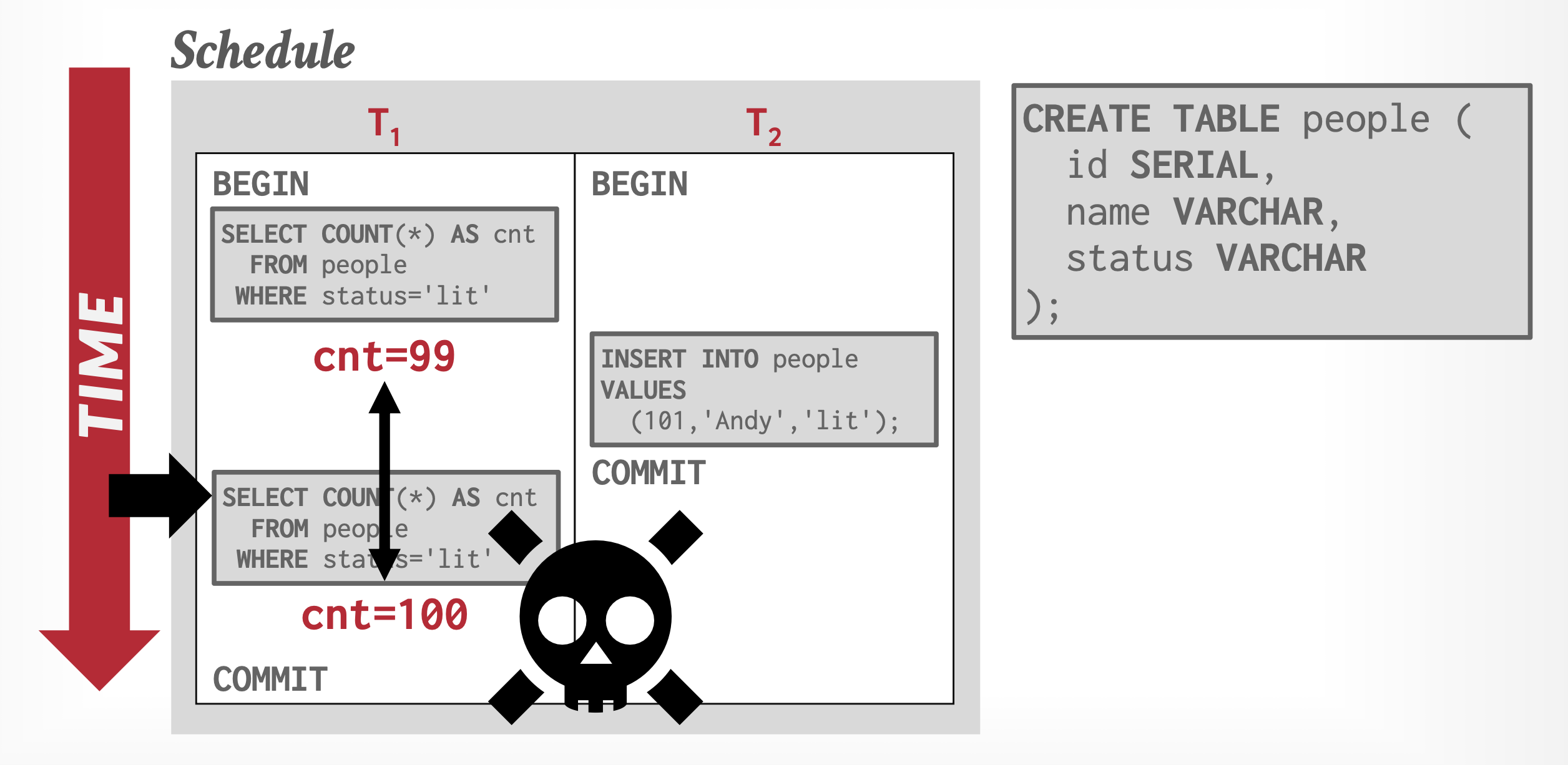 FOR UPDATE子句创建人为冲突的方法,以保证可串行性。- 添加