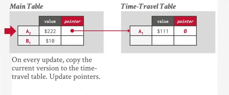 元组级别:DBMS 通过直接检查元组来定位旧版本数据,具体实现方式有两种: