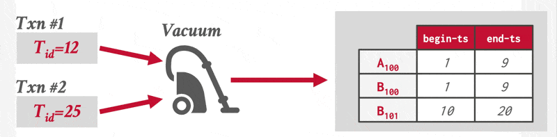 DBMS 需要随时间推移从数据库中移除可回收的(reclaimable) 物理版本。当一个版本不被任何活跃事务“可见”,或是由已中止的事务创建时,该版本即为可回收状态。我们可以执行元组级别或事务级别的垃圾回收(garbage collection, GC) 操作。