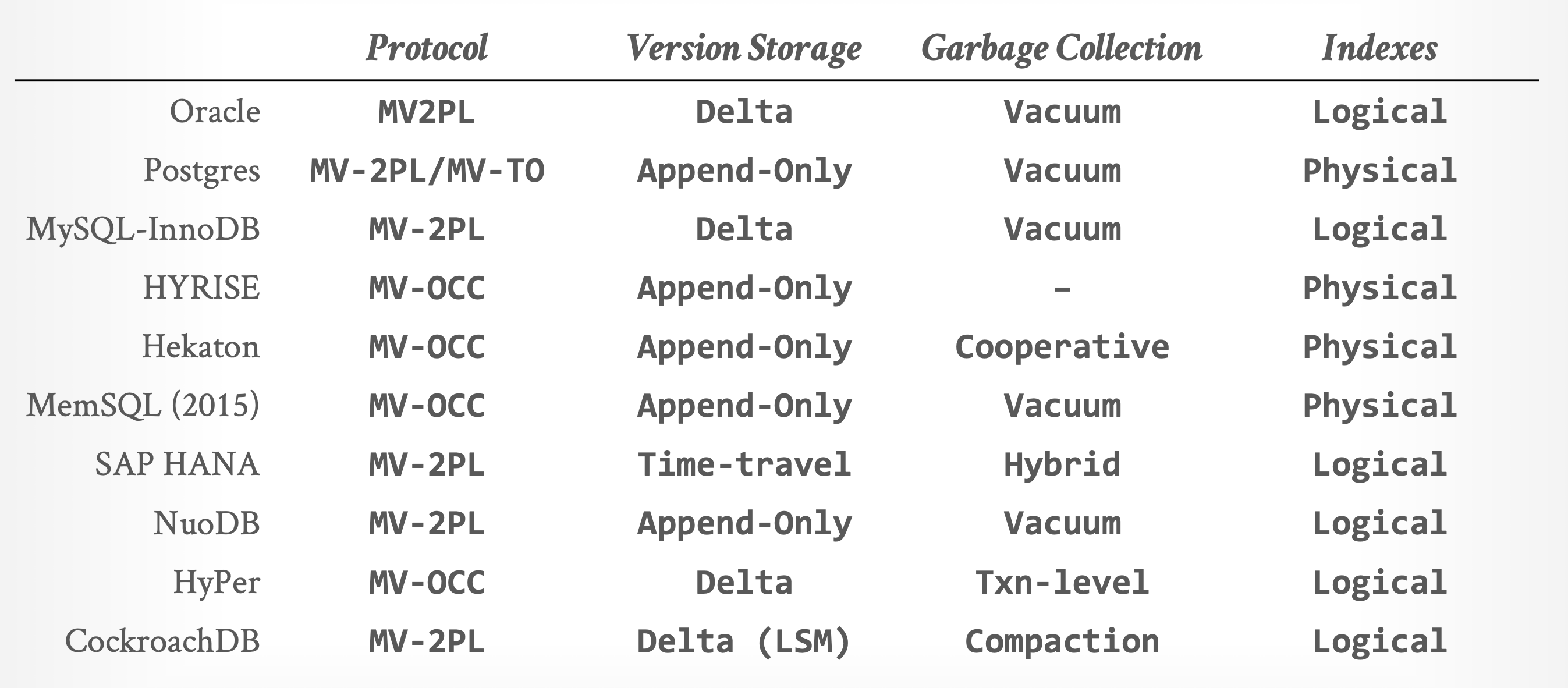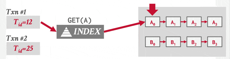 物理指针:DBMS 通过物理地址定位版本链头部;当版本链头部更新时,要求同步更新所有索引,因此成本可能会非常高。