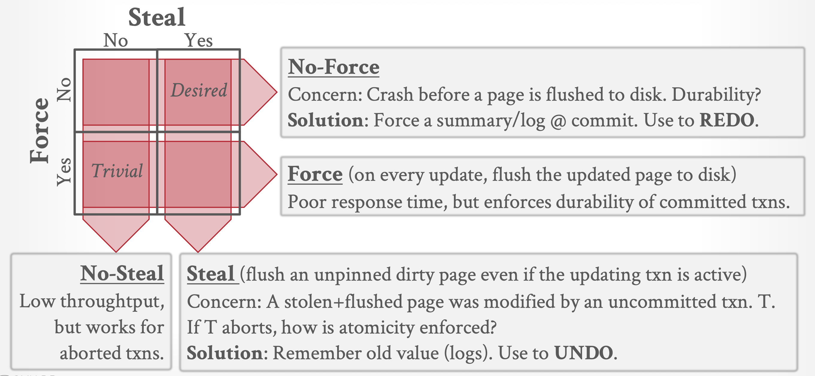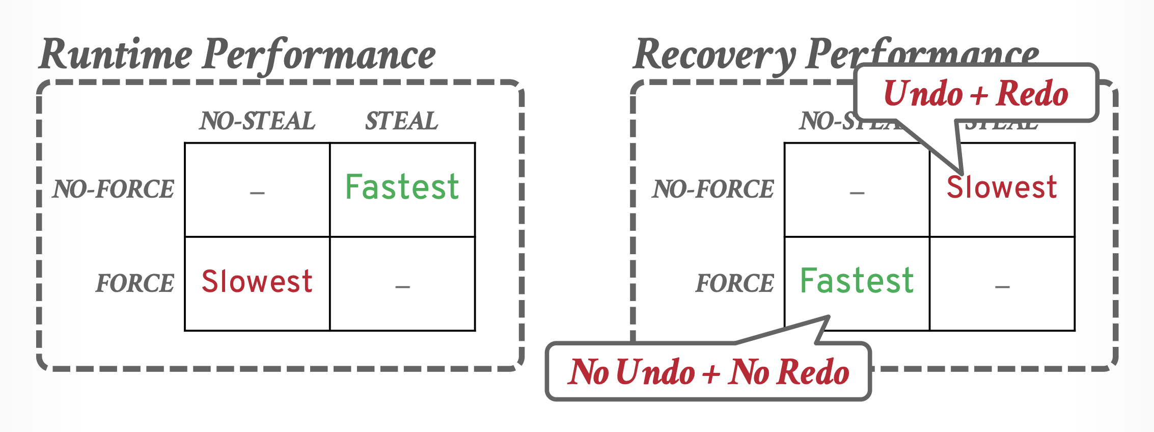 - 但在非确定性并发控制方案中存在并发事务时,逻辑日志难以实现故障恢复