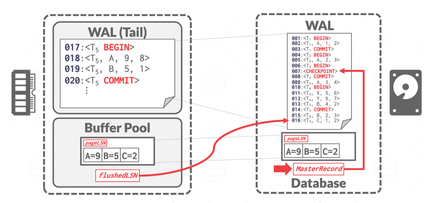 | MasterRecord | 磁盘 | 最新检查点的 LSN |