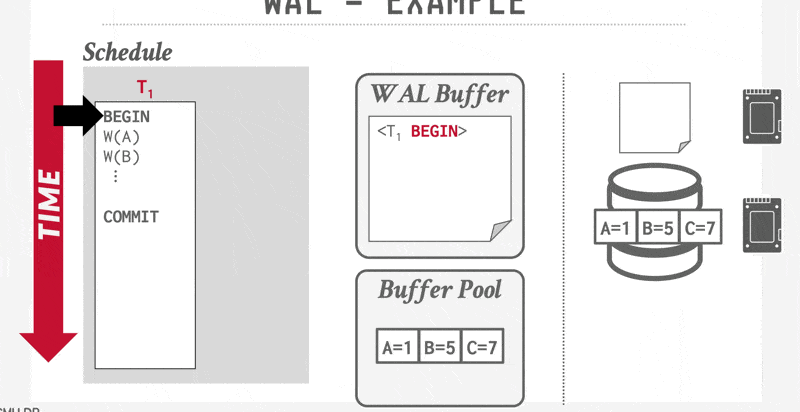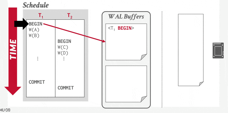 为确保事务 \(T_i\) 的原子性,我们希望要么将 \(T_i\) 中所有对数据库的修改作用在数据库中,要么不作任何改动。为实现这一目标,