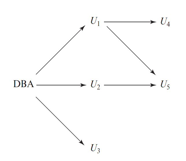 - 假如撤回 U1 的特权,那么 U4 的特权也会被撤回,但是 U5 的不会,因为 U2 也给予 U5 特权