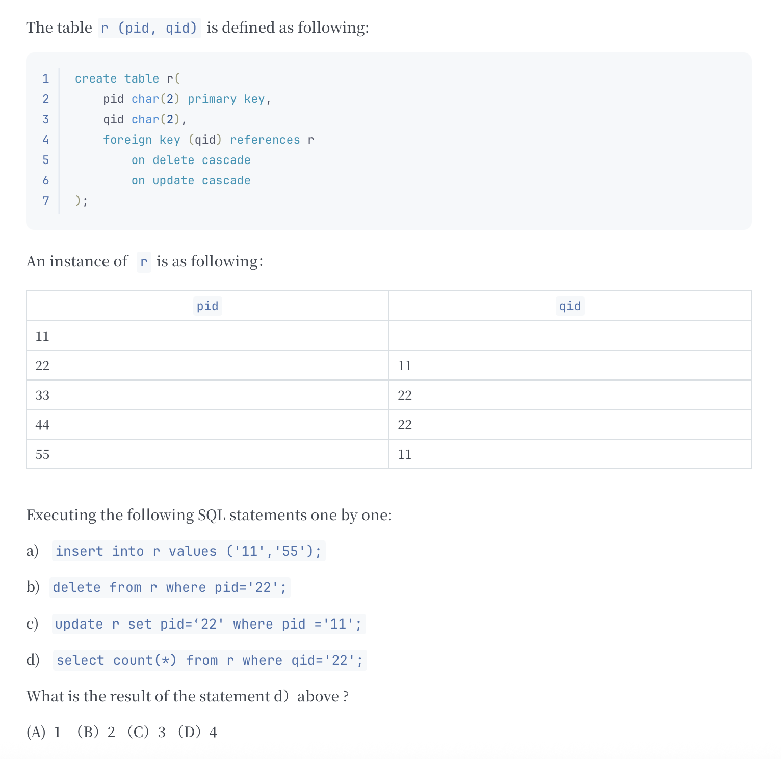 当然,也可以用 CASCADE 关键字取代 RESTRICT,显式指出级联撤回。实际上不用写出这一关键字,毕竟这是默认行为。