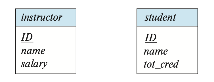 employee(ID, street, city, salary) student(ID, street, city, tot_cred)