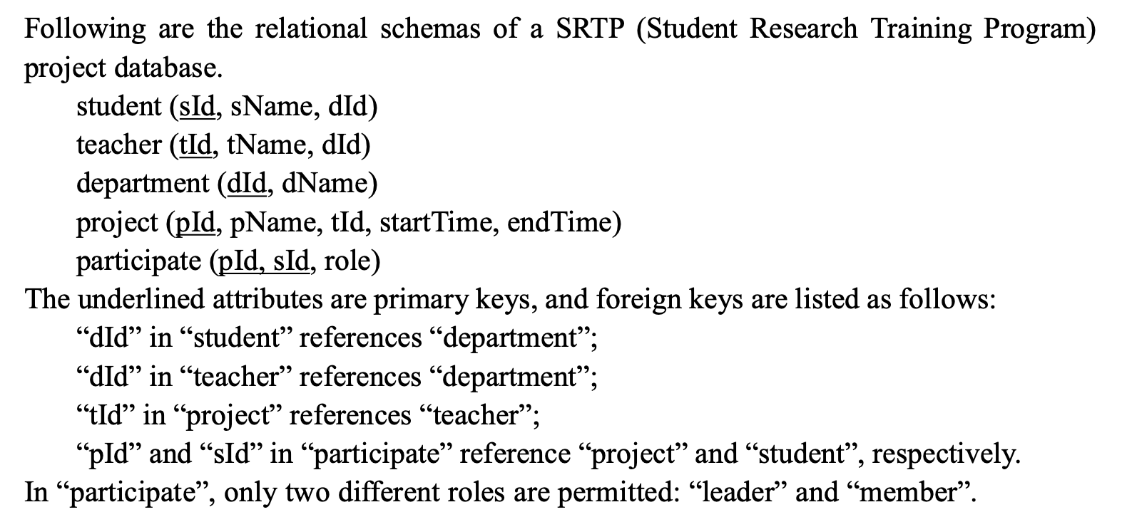 Paper(PaperID, Title, Abstract, SubmitDate, Status, FileName, ConfID)- PK: