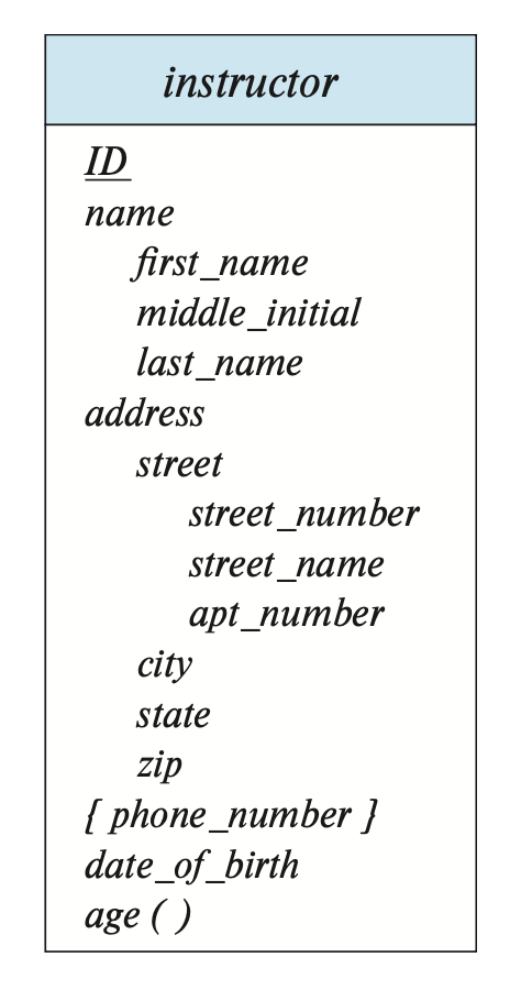 - 复合属性也可以以层级(hierarchy) 的形式表现,如下所示: