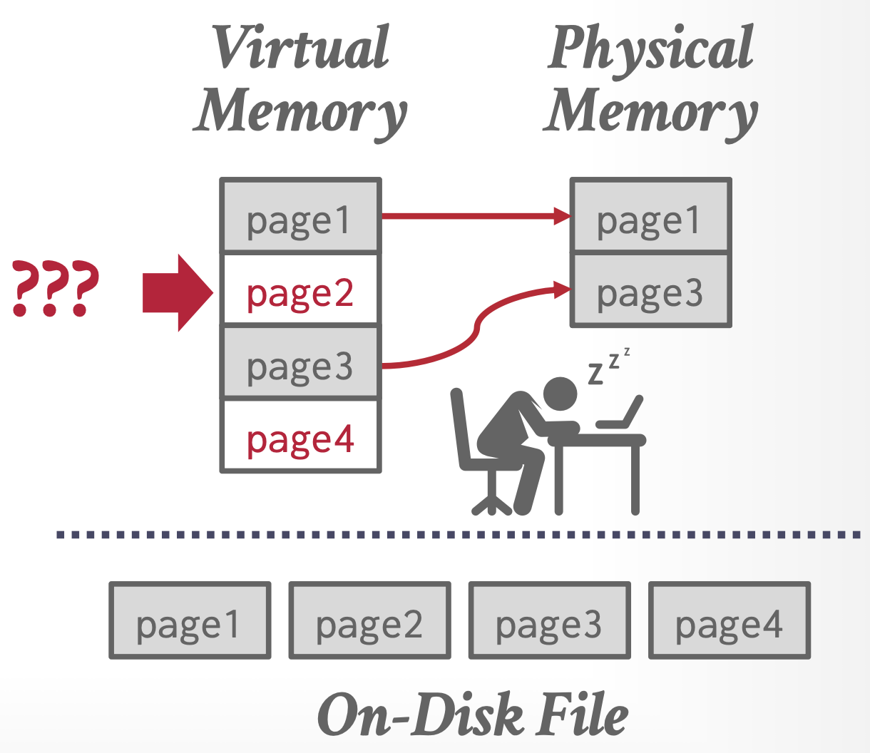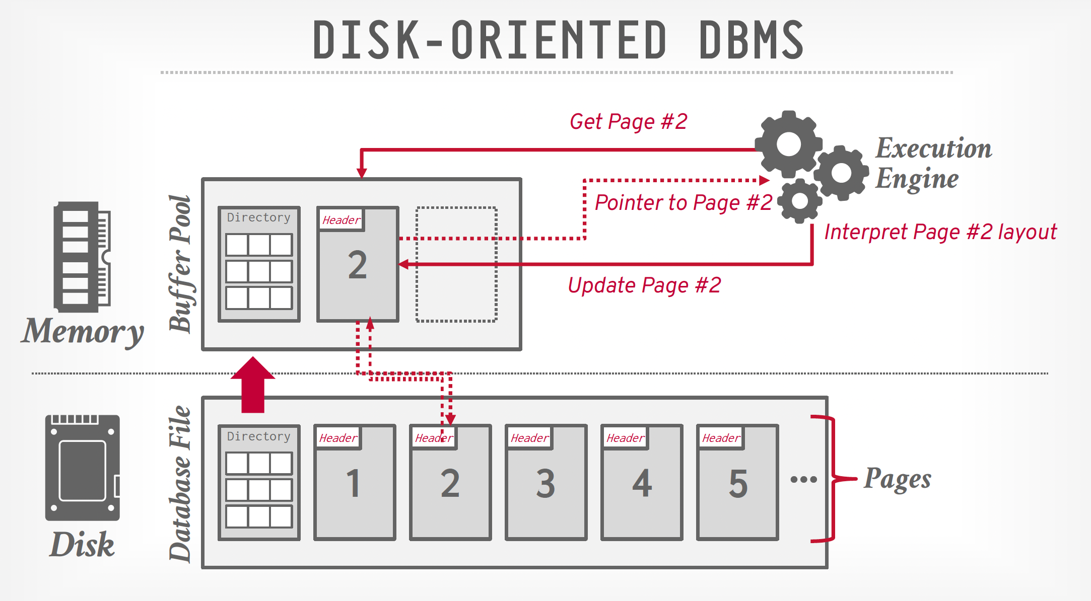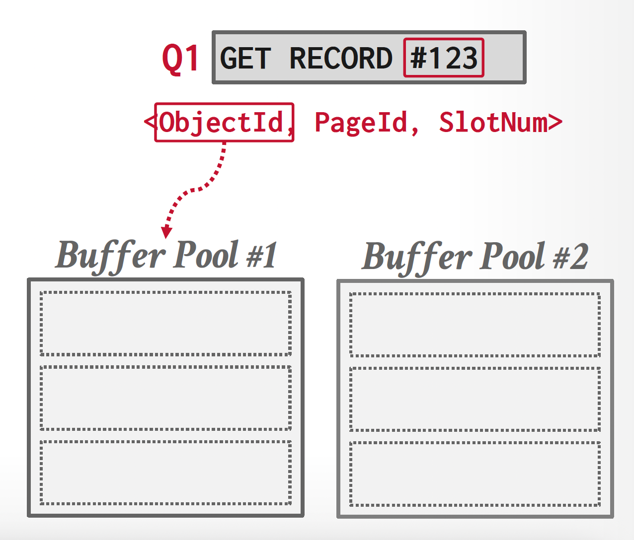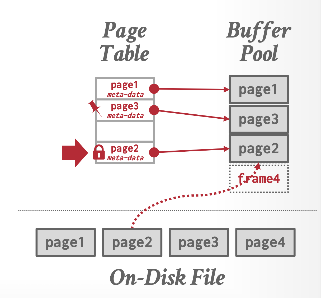 - 此外 DBMS 还有一个执行引擎(execution engine),用于执行查询,它会向缓存池请求一个具体的页,然后缓存池会把这个页放到内存中,并向执行引擎返回这个页在内存中的指针