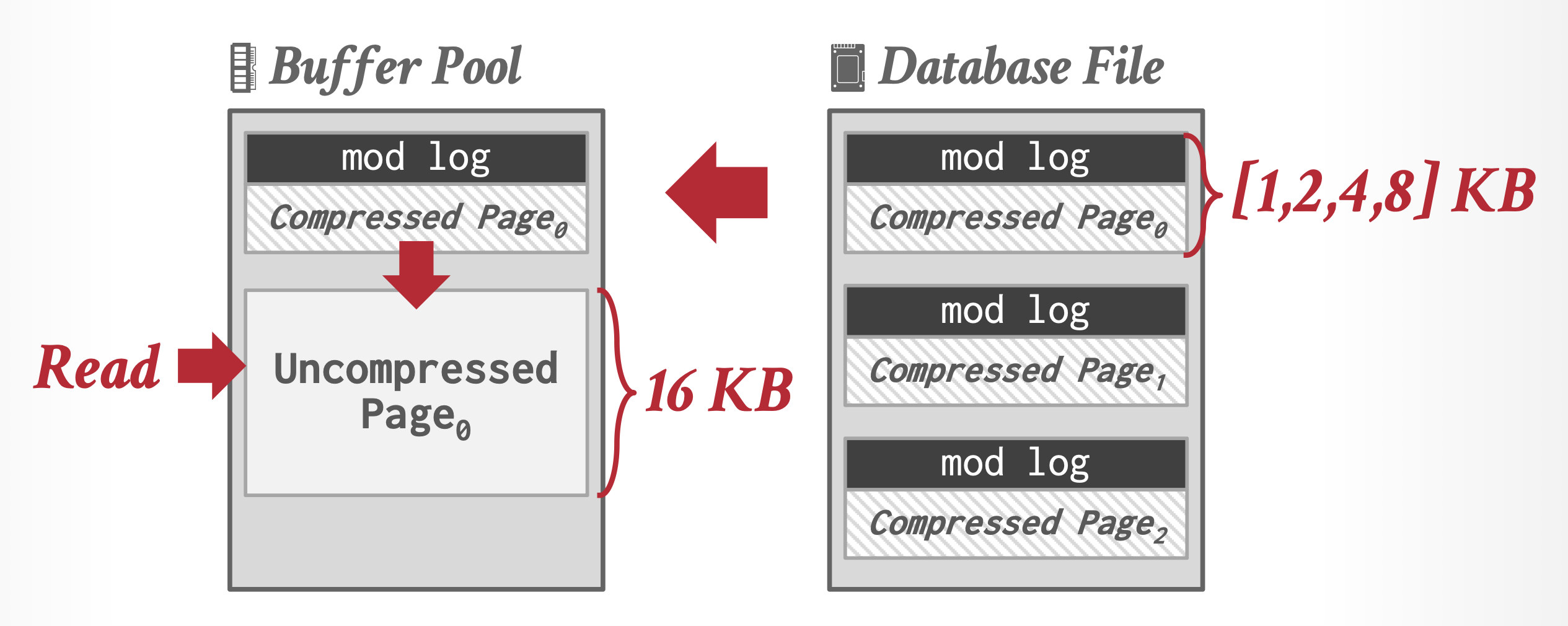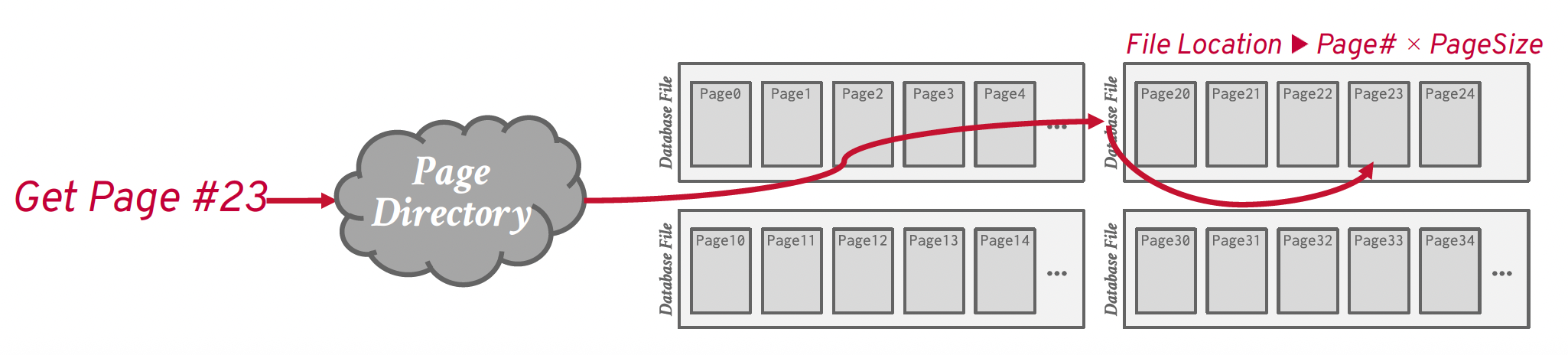 ) 。如果数据库是单个文件的话,那么页 ID 就是文件的偏移量。在每个 DBMS 实例,每个数据库或每个元组中,页 ID 是唯一的。大多数 DBMS 提供了一个间接层,将页 ID 映射到文件路径和偏移量上,由存储管理器负责这个转化。 - 大多数 DBMS 采用固定的页大小,以避免额外的工程开销。